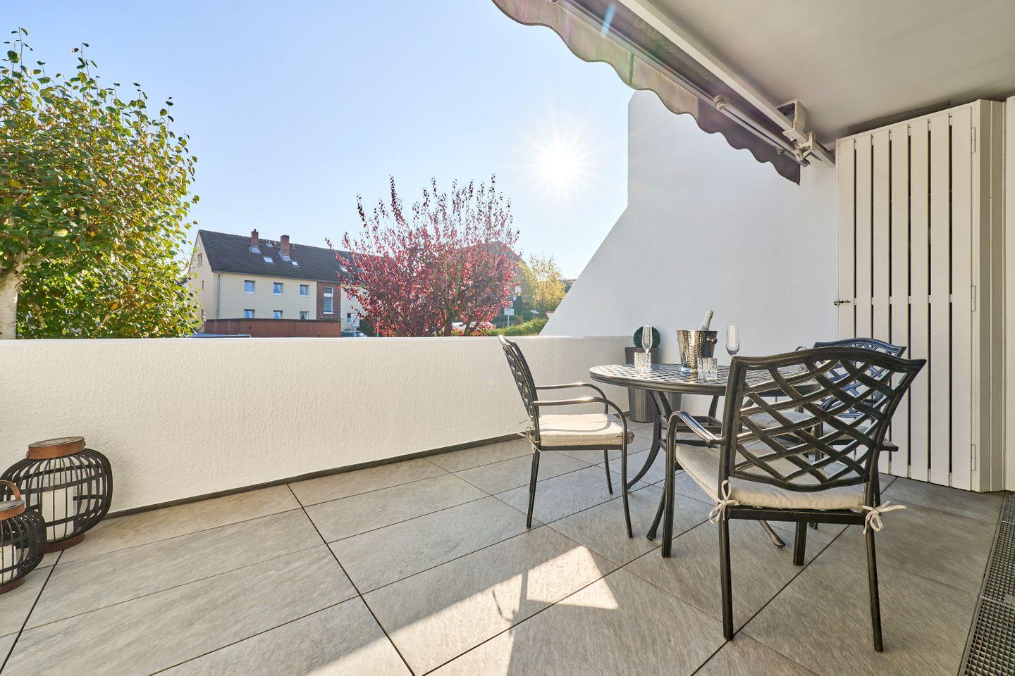 Beim Betreten des Apartments erwartet Sie eine elegante und gemütliche Atmosphäre. Ein Highlight der Wohnung ist der helle, offene Wohn-Essbereich, der einladend gestaltet und stilvoll möbliert ist. Hier können Sie gemeinsame Mahlzeiten genießen, entspannen oder einen gemütlichen Abend bei einem Film verbringen.
