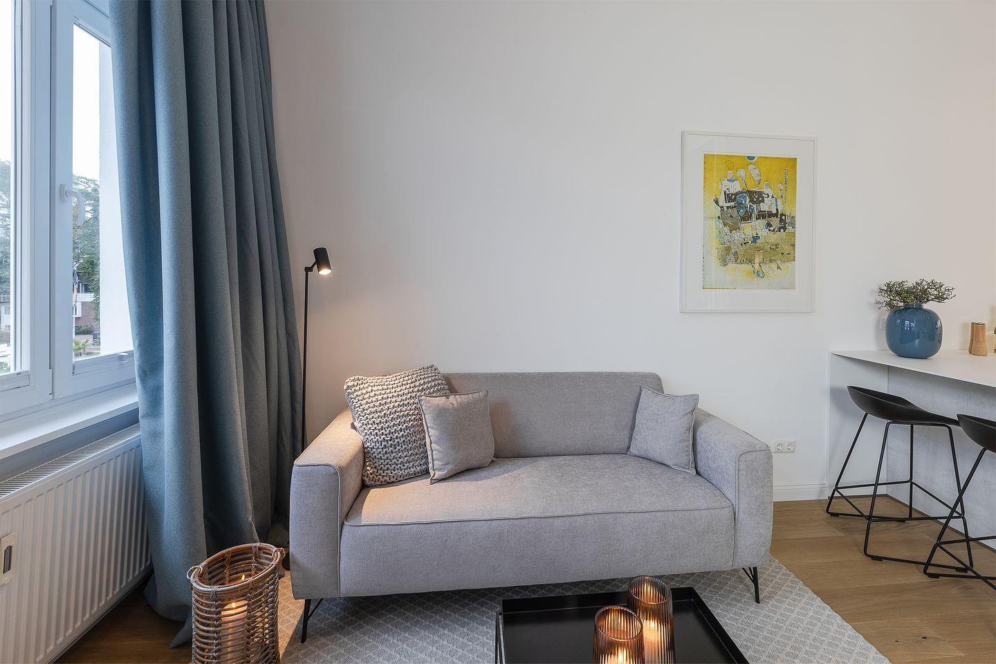 Stilvolle Ferienwohnung Meerzeit am Timmendorfer Strand mit historischem Charme, modernem Komfort und kleinem Meerblick.