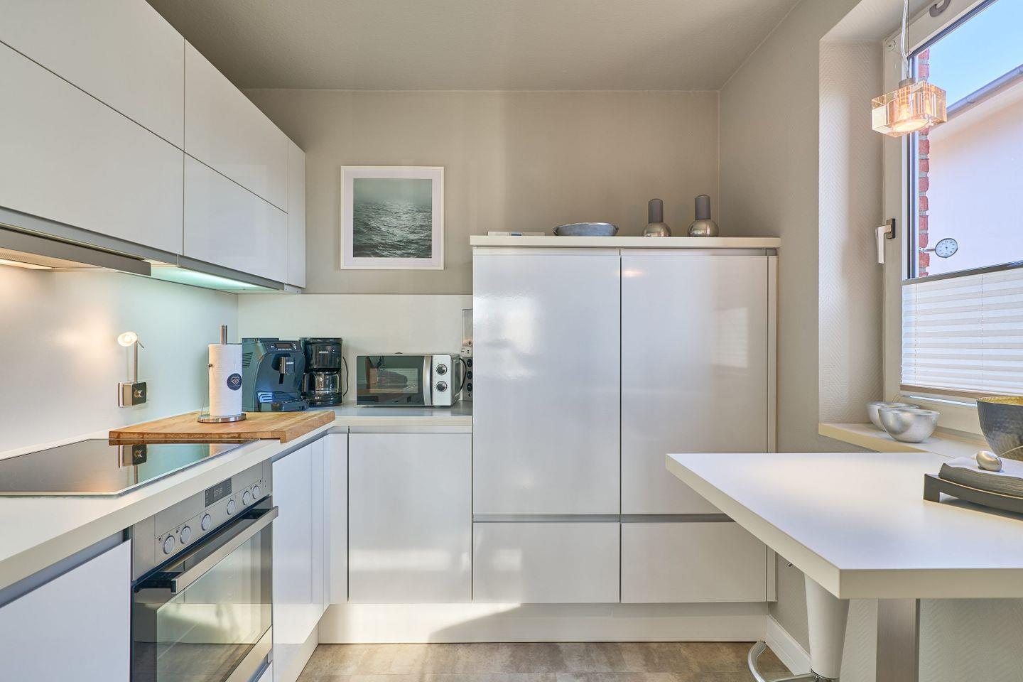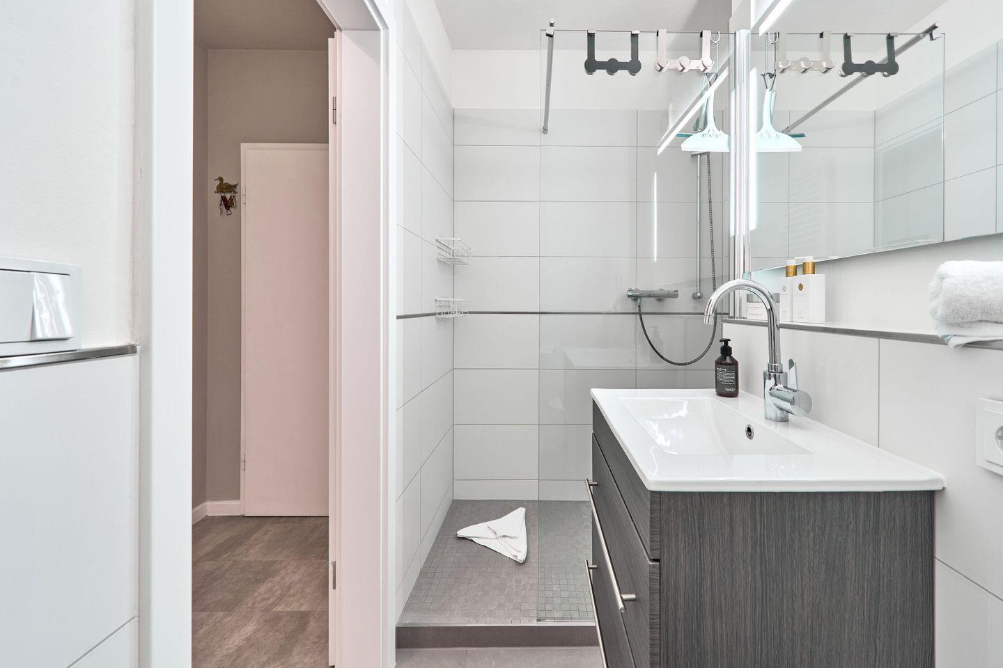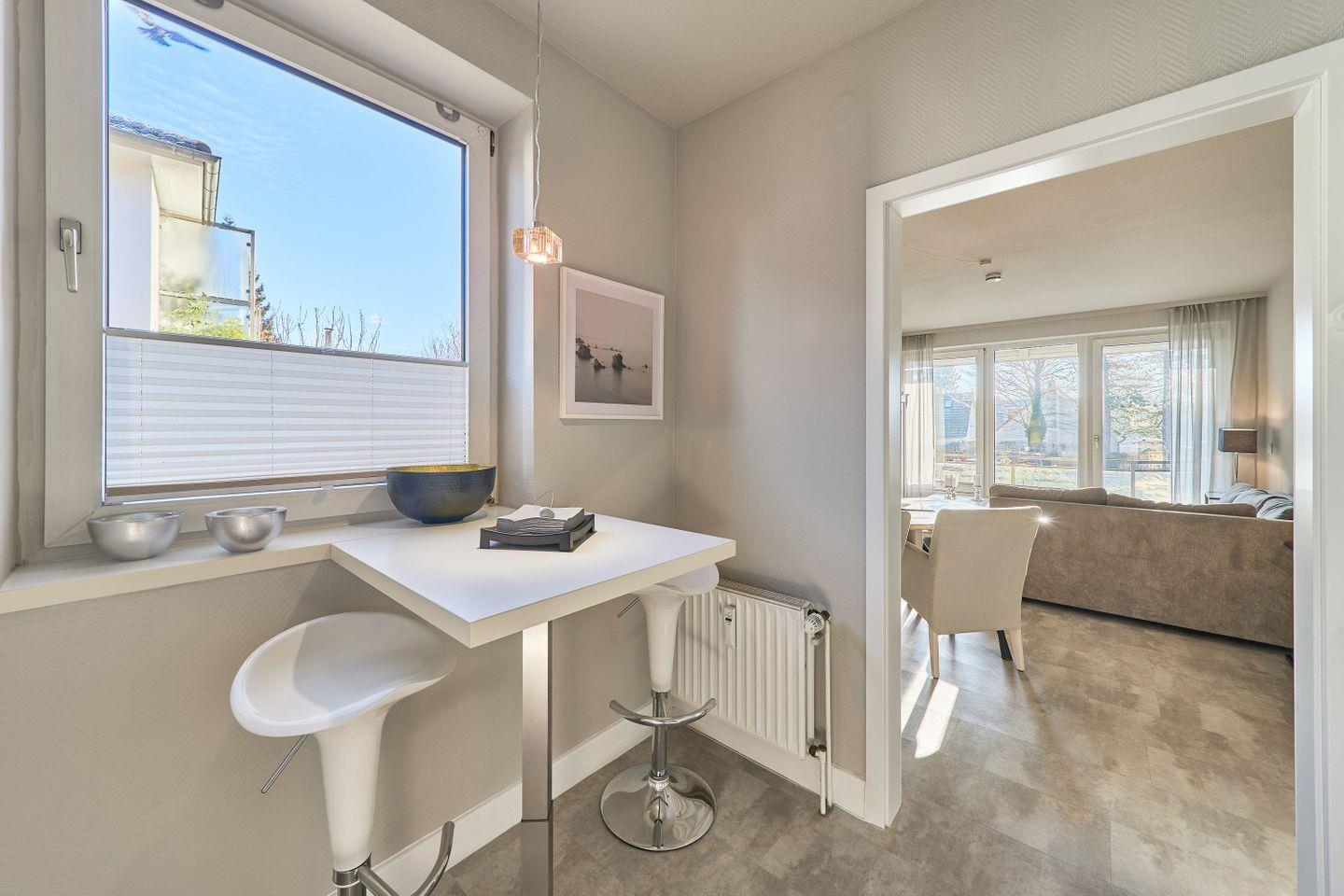 Die großzügig geschnittenen, lichtdurchfluteten 2 Zimmer sind stilvoll eingerichtet und schaffen eine gemütliche Atmosphäre, in der Sie sich sofort wohlfühlen werden. Die moderne, neue Küche ist mit hochwertigen Geräten ausgestattet und lädt dazu ein, nach einem entspannten Strandtag gemeinsam zu kochen. Das neue, elegante Badezimmer überzeugt mit einer großzügigen Walk-in-Dusche, die Ihnen ein Gefühl von Wellness bietet.