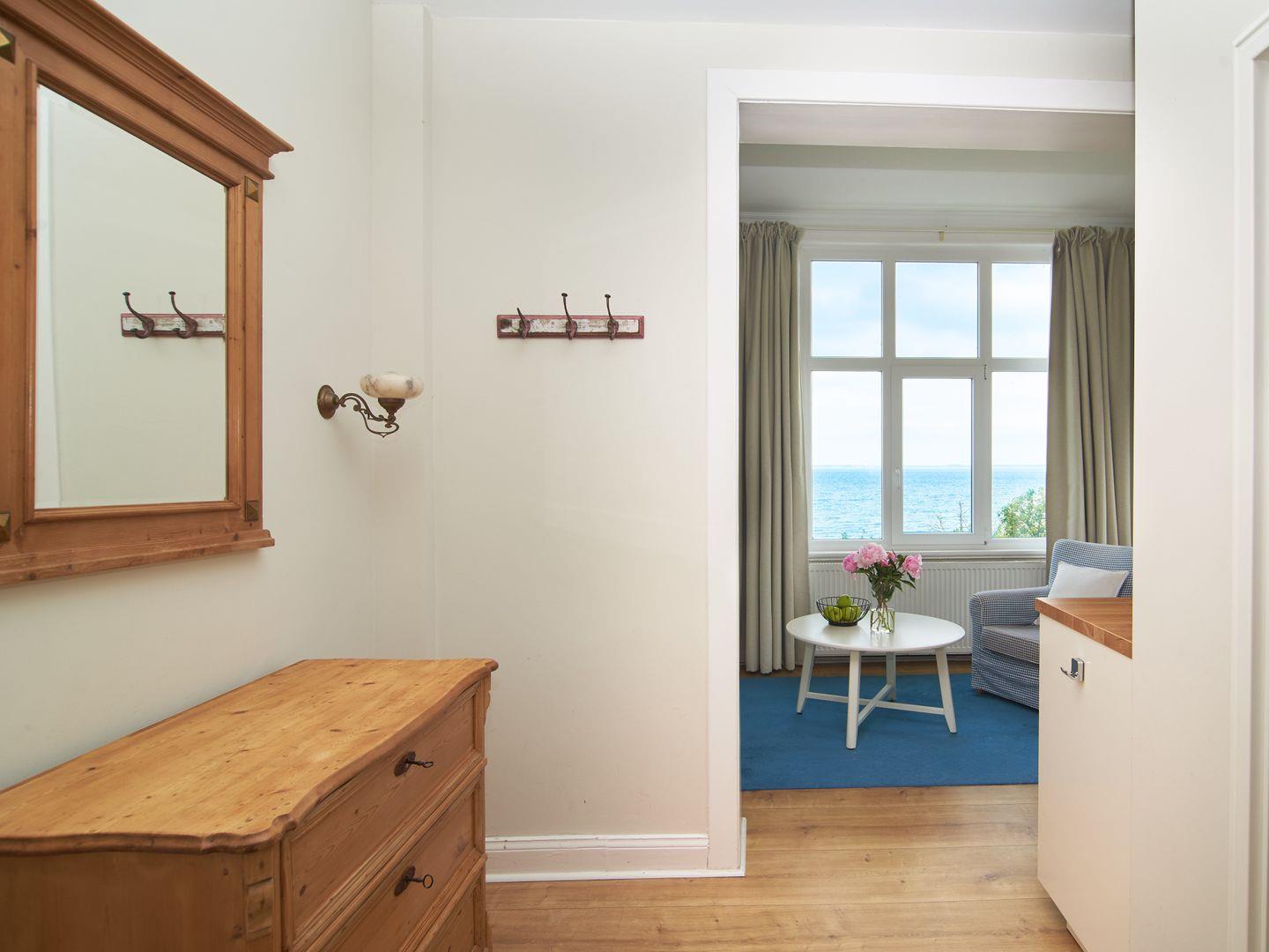Das Apartment „Strandkieker“ in der ersten Etage bietet wunderbaren Meerblick durch die große Fensterfront im Essbereich und Sitzbereich. Das geräumige Schlafzimmer sorgt für erholsamen Schlaf. Mit einer Küchenzeile für kleine Mahlzeiten und einem schönen Badezimmer mit Dusche ist es der ideale Rückzugsort für einen entspannten Urlaub an der Ostsee – direkt an der Strandpromenade und Raum zum Wohlfühlen.