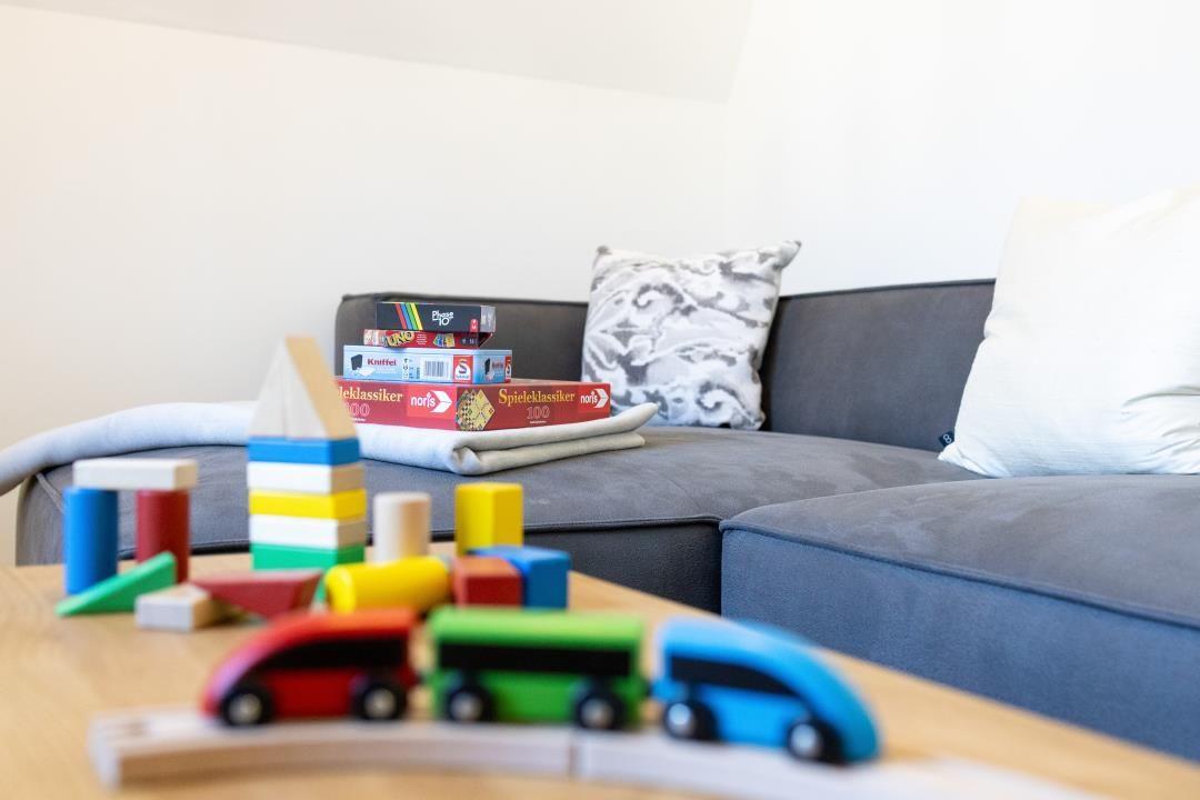 Die Wohnung ist ideal für Familien: Ein Babyreisebett und ein Hochstuhl können auf Wunsch bereitgestellt werden. Die zentrale Lage ermöglicht kurze Wege zu Spielplätzen, Eisdielen und zum Strand.