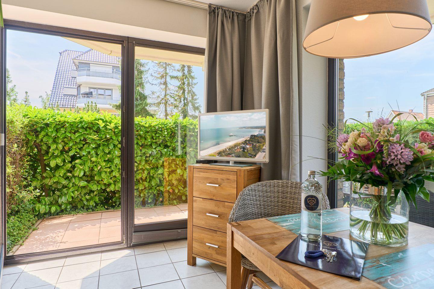Gemütliches Apartment mit Sonnenterrasse, nur 150 Meter vom feinsandigen Ostseestrand in Timmendorfer Strand entfernt.