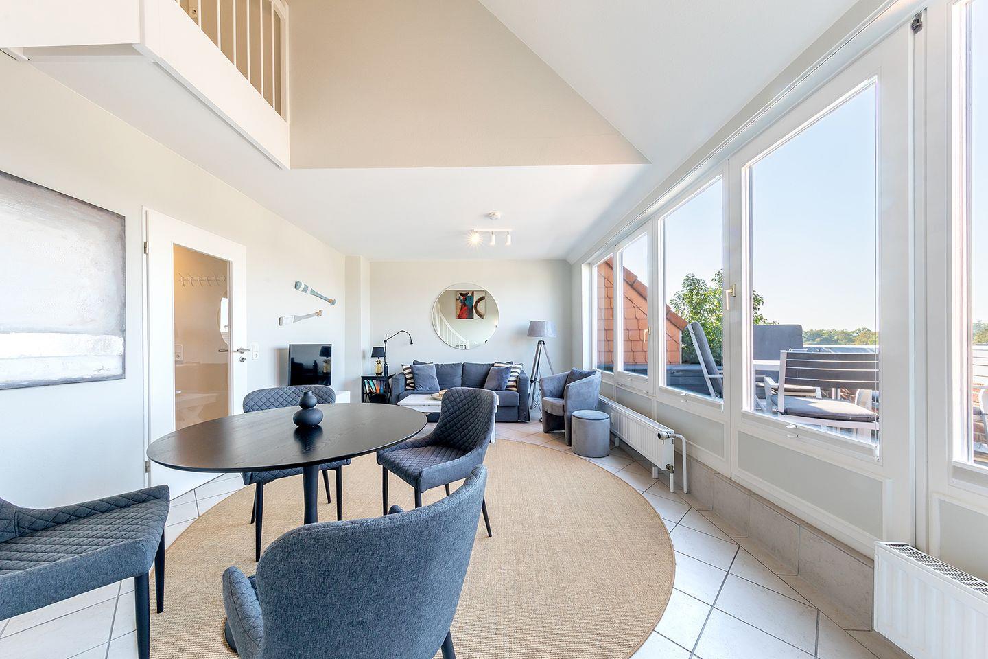 Moderne Maisonettewohnung in Niendorf Ostsee, nur 30 m vom Strand mit Westbalkon, WLAN und Tiefgarage – ideal für einen erholsamen Ostseeurlaub.