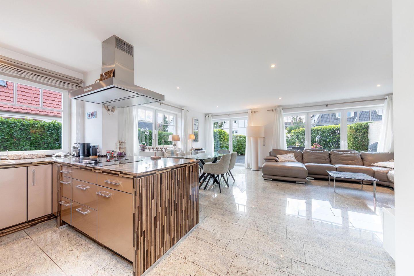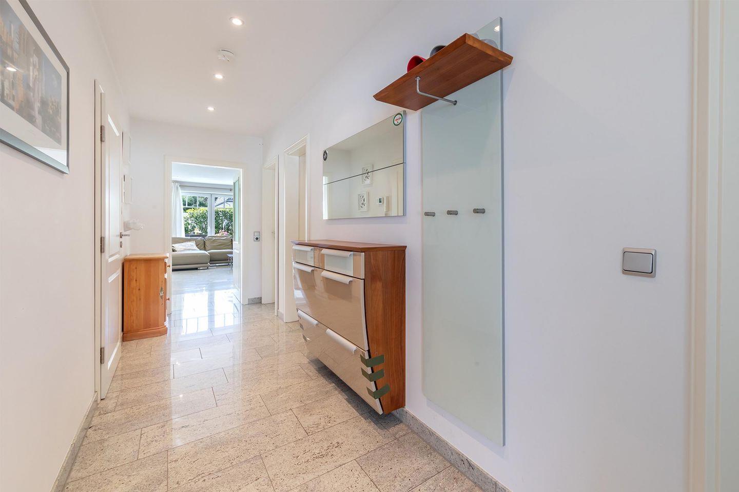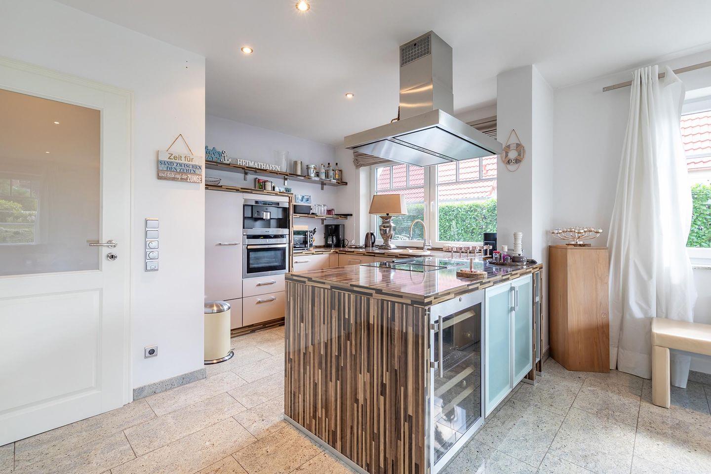 Dank der vielen bodentiefen Fenster wirkt die Wohnung offen, freundlich und warm. Der große Wohn- und Essbereich mit offener Küche lädt zum Zusammensein ein – ob beim gemeinsamen Kochen, Spielen oder einfach beim Abschalten nach einem Tag am Meer. Zwei behagliche Schlafzimmer sorgen für erholsame Nächte, das stilvolle Badezimmer mit Dusche und Badewanne für Wellnessgefühl im Alltag. Praktisch: Ein Hauswirtschaftsraum mit Waschmaschine & Trockneranschluss, ein eigener Garagenstellplatz sowie ein Abstellraum für Strandutensilien.