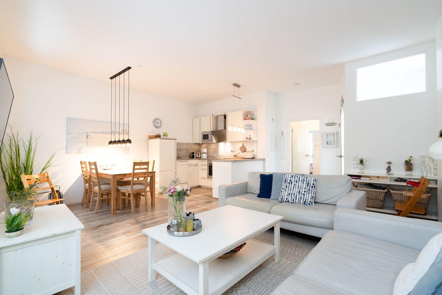 Geräumiges Erdgeschoss-Appartement mit zwei Schlafzimmern, offenem Wohnbereich, gut ausgestatteter Küche und Terrasse mit kleinem Garten. Ideal für Familien und alle, die Strandnähe, Komfort und eine gemütliche Atmosphäre an der Ostsee suchen.