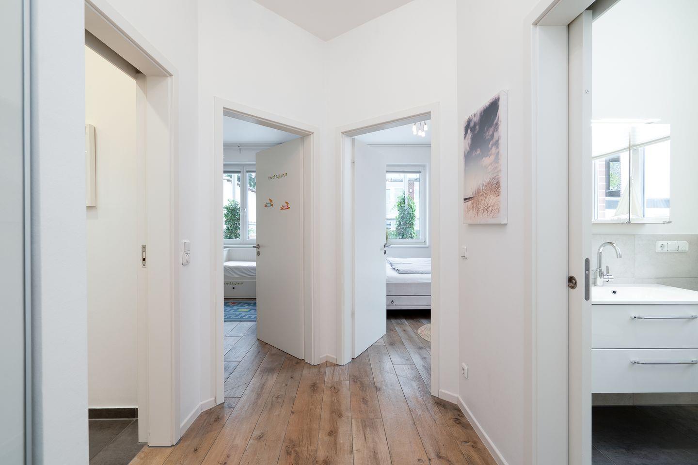 Dieses freundliche Erdgeschoss-Appartement im Hinterhaus der Strandallee 22 bietet Euch auf ca. 99 m² ein einladendes Zuhause für Eure Zeit an der Ostsee. Zwei separate Schlafzimmer, ein großzügiger Wohn- und Essbereich sowie ein kleiner Garten mit Terrasse und eigenem Strandkorb schaffen den perfekten Rahmen für entspannte Urlaubstage. Bodentiefe Fenster, Fußbodenheizung und eine stimmige Ausstattung sorgen für ein angenehmes Wohngefühl. WLAN (kostenfrei, bei Störungen kein Anspruch auf Erstattung oder Ersatz), zwei eigene Parkplätze sowie eine Waschmaschine und ein Trockner im Gemeinschaftskeller gehören ebenfalls dazu – ideal für Familien, Paare oder kleine Reisegruppen.