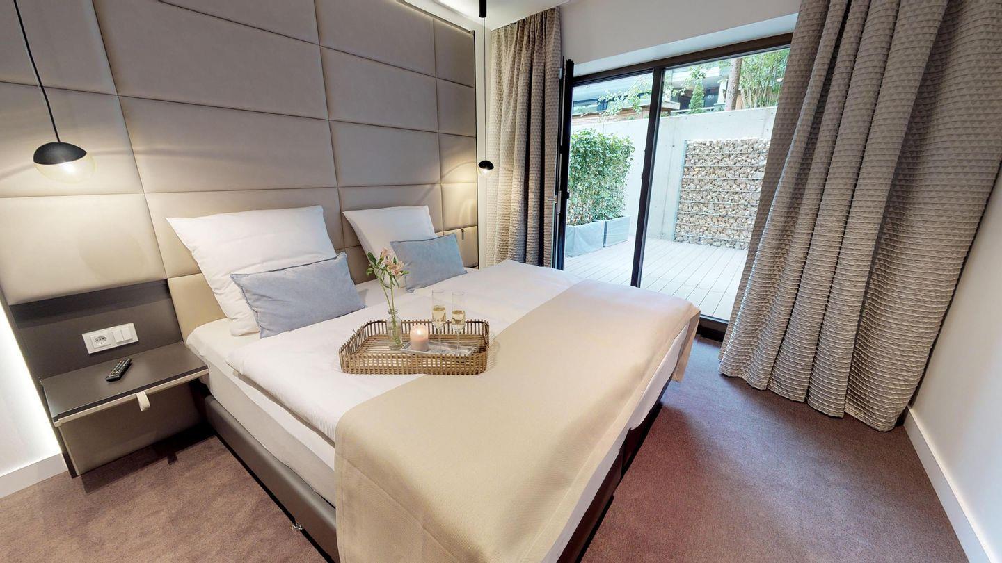 Die herrliche Luxussuite 0.05 im Erdgeschoss ist mit ihren 142 m² die größte im "White Pearl" auf zwei Ebenen und bietet Platz für 6 Personen. Die Suite verfügt über zwei separate Schlafzimmer sowie ein Schlafsofa im Wohnbereich für 2 Personen.