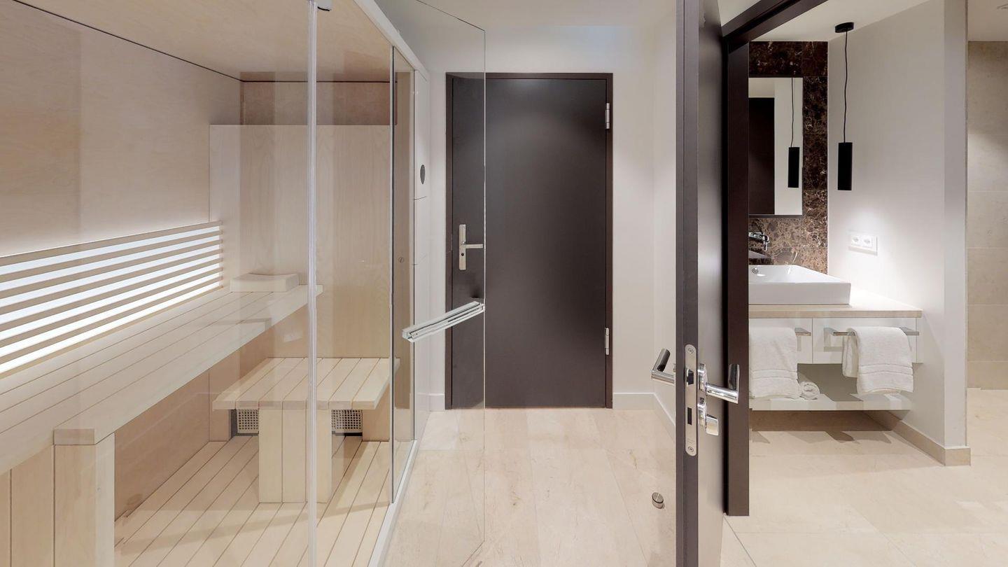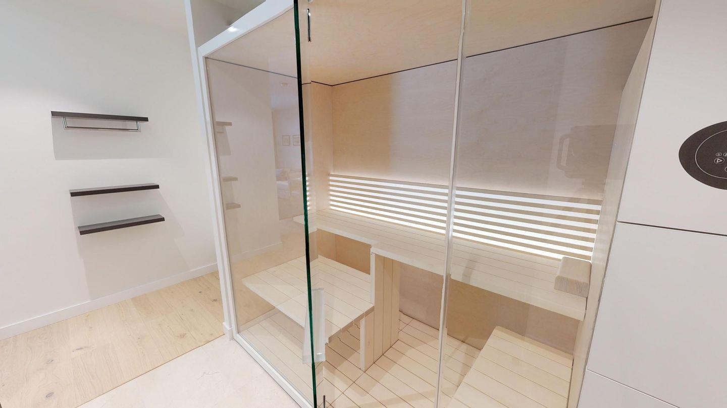 Highlights dieses Apartments sind die eigene Sauna (2,37m x 1,19m) im Flur und der Balkon auf der Ostseite, der einen herrlichen Blick auf die Grünfläche und den angrenzenden Wald bietet. Zur Wohnung gehört ein Außenstellplatz. Diese Wohnung ist barrierefrei gemäß LBO.