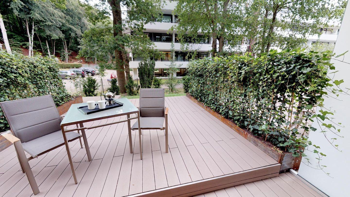 Ein Highlight des Apartments ist die möblierte Terrasse mit Sonnenliegen, die entspannte Stunden an der frischen Luft ermöglicht! Zur Wohnung gehört ein Außenstellplatz.