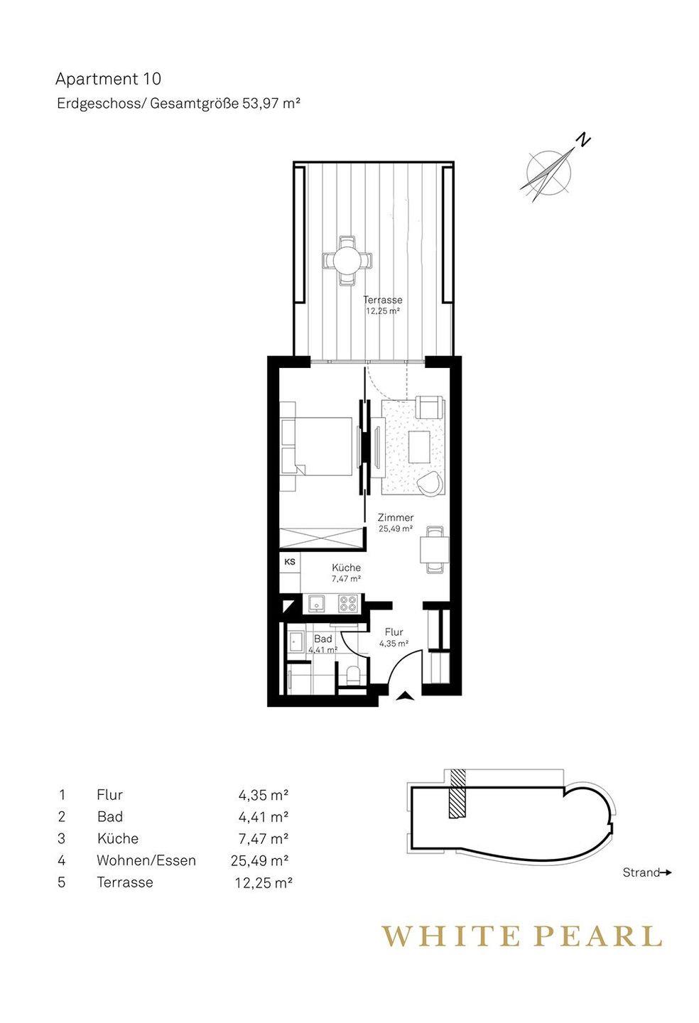 Nur wenige Gehminuten vom Strand befindet sich das Luxusapartment 0.10 im Erdgeschoss des "White Pearl" und bietet Platz für 2 Personen auf 54 m² - auch Ihr Hund ist willkommen!