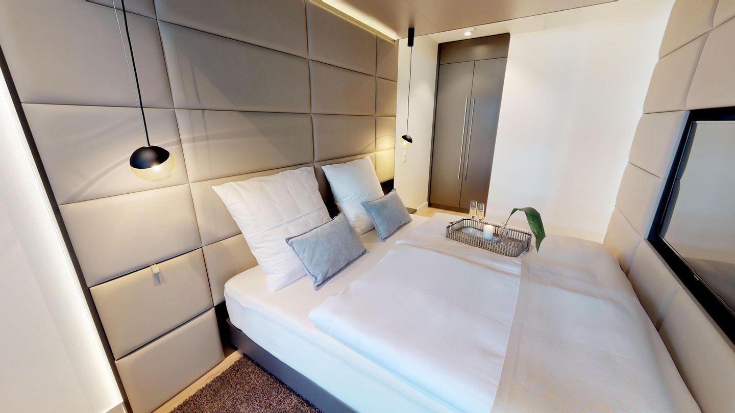 Es erwartet Sie eine offene, gut ausgestattete Küchenzeile mit einer Essecke im Wohnbereich. Des Weiteren gibt es ein modernes Bad mit Dusche. Der offene Wohn-/Essbereich wird durch das komfortable Sofa abgerundet, welches eine Schlafmöglichkeit für 2 Personen (wie oben beschrieben) bietet. Das separate Schlafzimmer mit einem Boxspring-Doppelbett wird durch Lamellen-Schiebetüren abgetrennt. Neben Smart-TVs bietet das Apartment auch einen DVD/Blu-ray Player sowie ein SoundTouch® Music System IV/CD/Bluetooth.