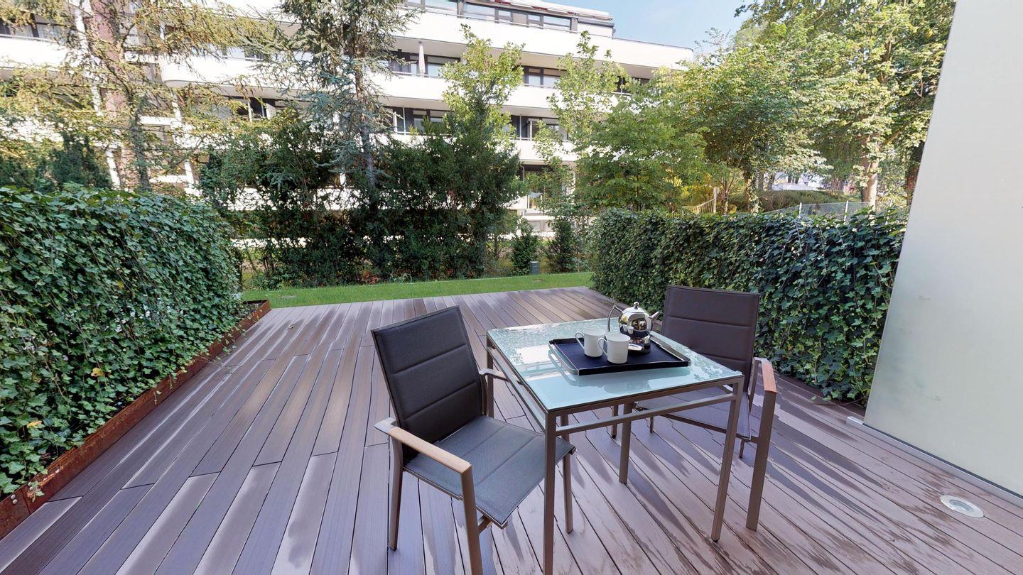 Ein Highlight der Wohnung ist die möblierte Terrasse mit Sonnenliegen, die zu entspannten Stunden an der frischen Luft einlädt! Zur Wohnung gehört ein Außenstellplatz.