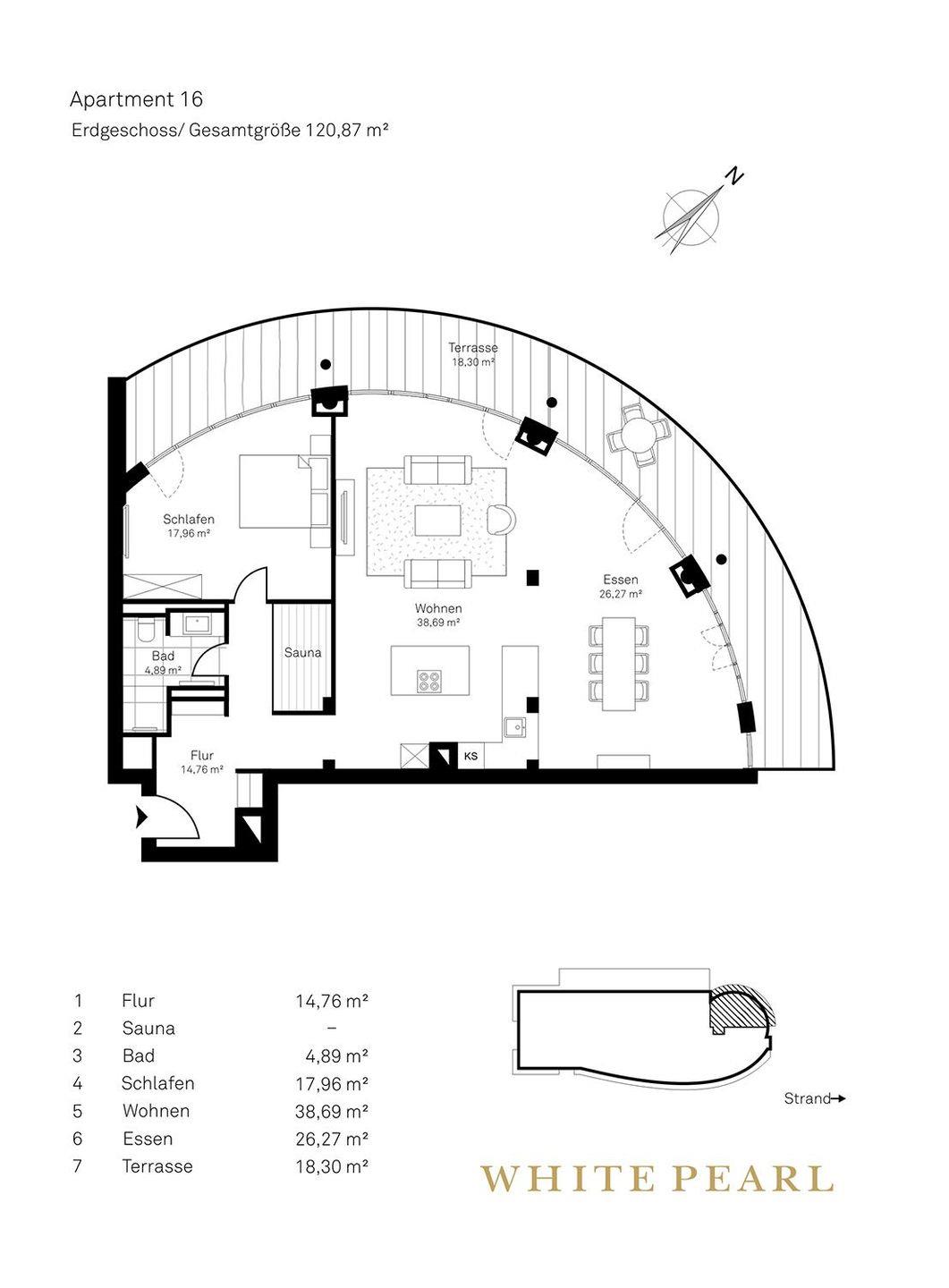 Das großzügige Luxusapartment 0.16 befindet sich im Erdgeschoss des "White Pearl" und bietet Platz für 4 Personen auf 121 m² mit einem separaten Schlafzimmer und einer Schlafcouch im Wohnbereich. Auch Ihr Hund ist willkommen!