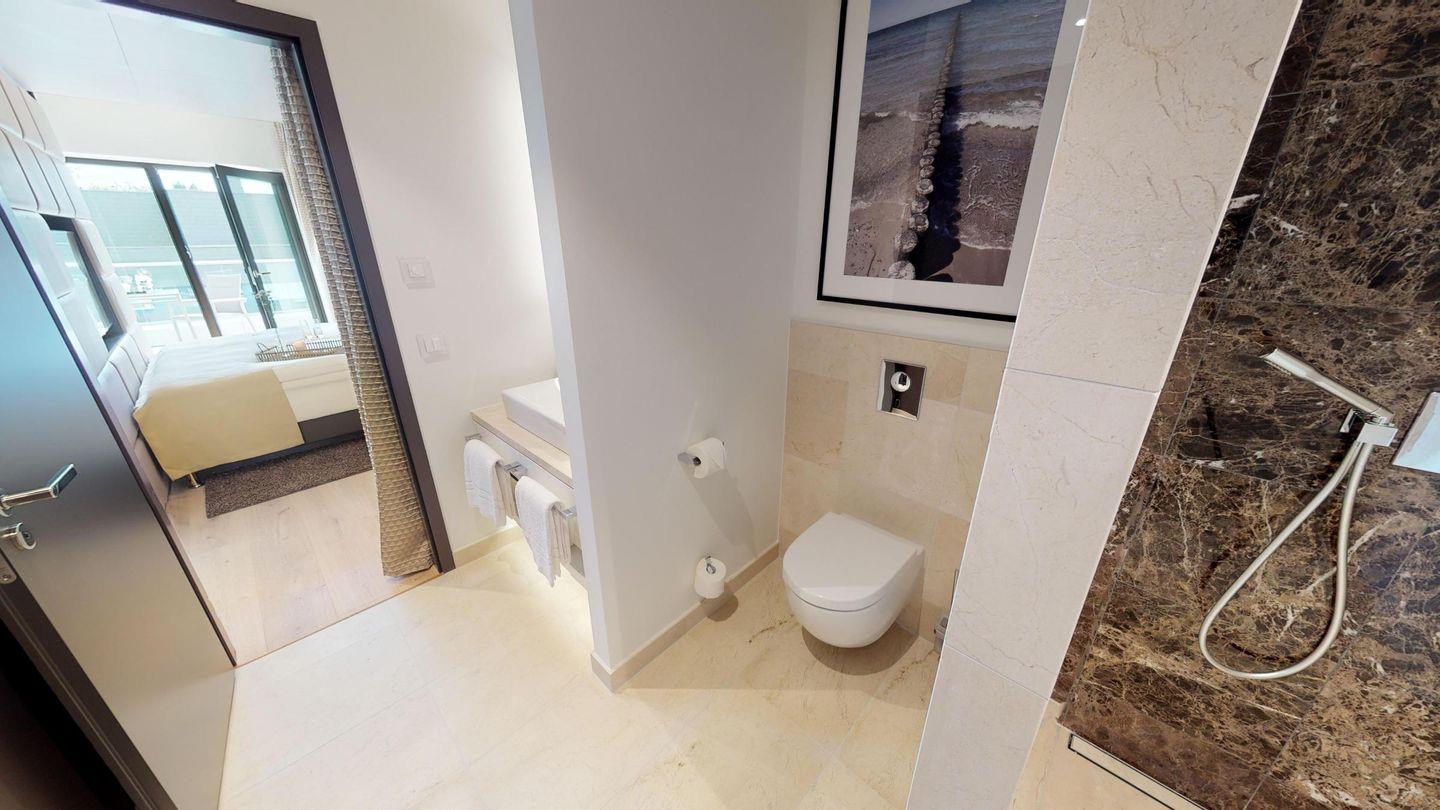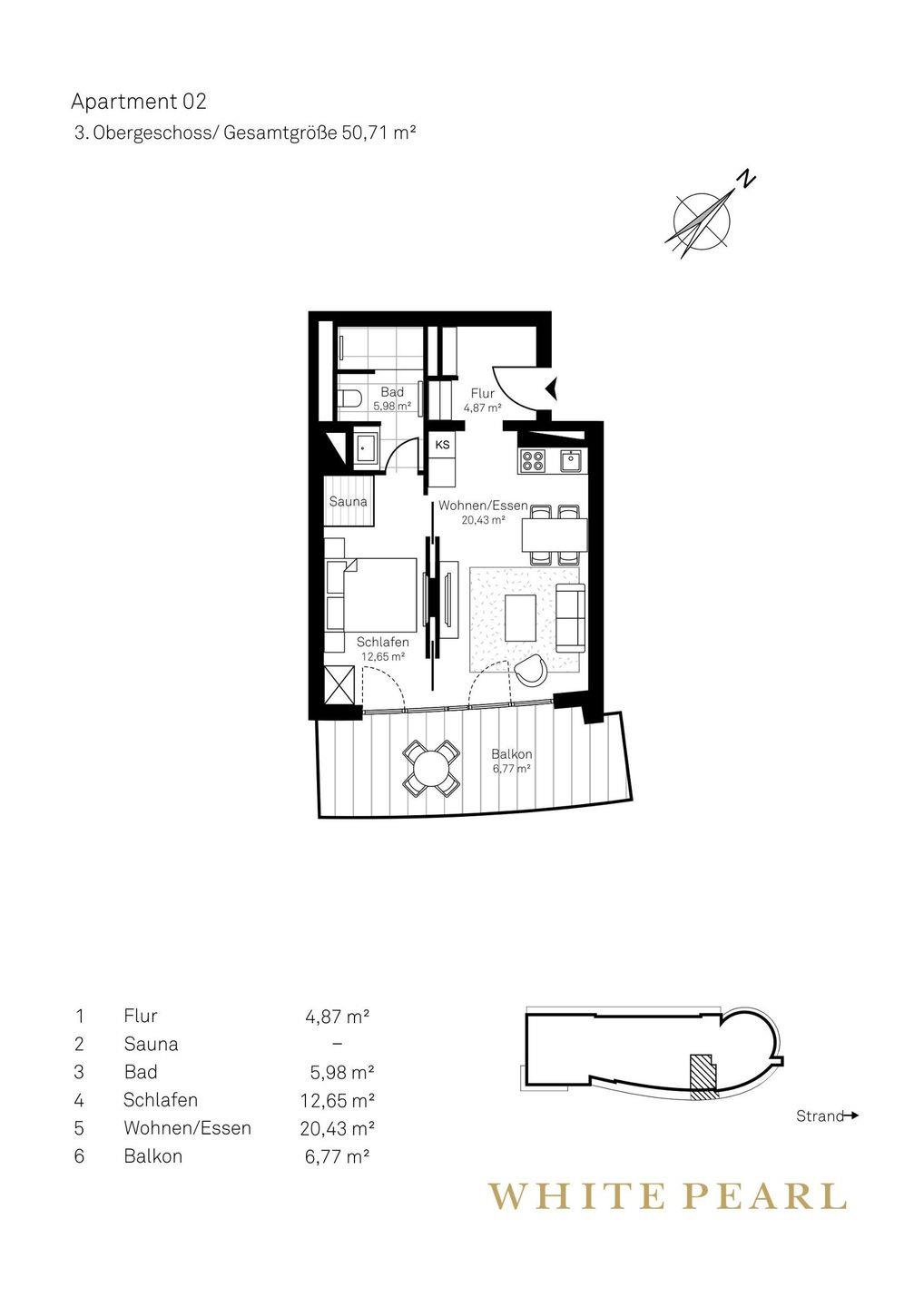 Nur wenige Meter vom Strand entfernt befindet sich das Luxusapartment 3.02 im 3. Obergeschoss des "White Pearl" und bietet auf 51 m² Platz für bis zu 2 Personen.