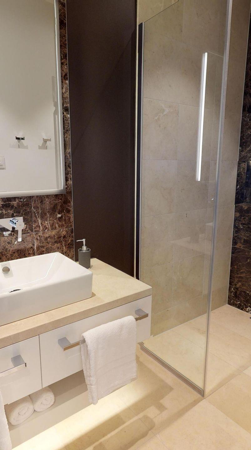 Das großzügige Penthouse verfügt über zwei separate Schlafzimmer, jeweils mit einem Boxspring-Doppelbett ausgestattet - eines der Schlafzimmer hat Zugang zum Balkon. Weiterhin gibt es einen lichtdurchfluteten Wohnbereich, der an die offene, voll ausgestattete Küchenzeile sowie an den schönen Essbereich angrenzt. Zwei luxuriöse Badezimmer mit Dusche runden das Penthouse ab.