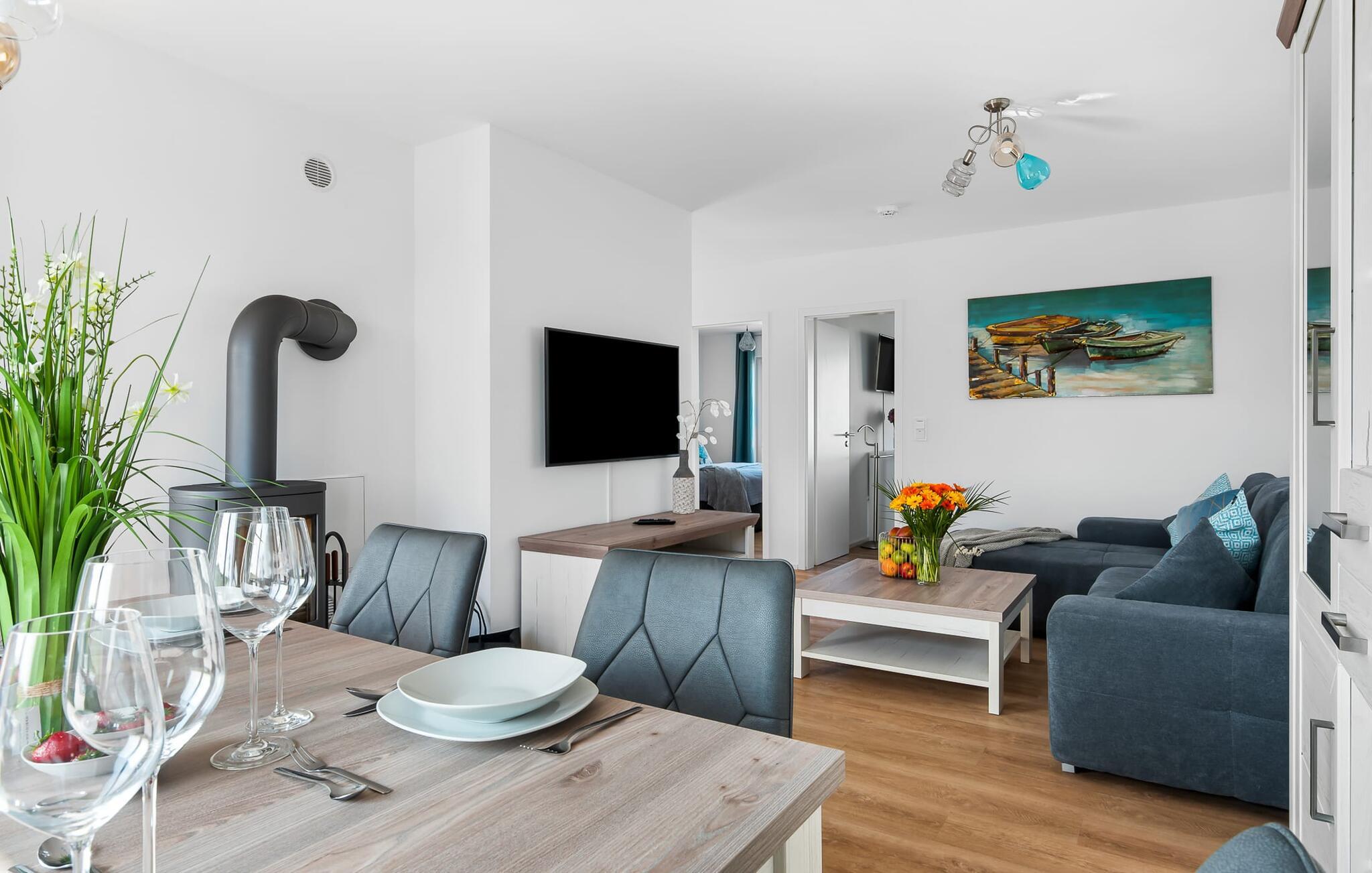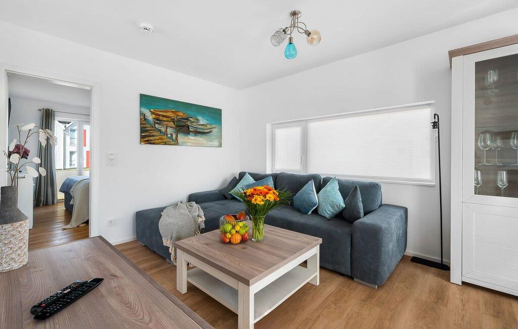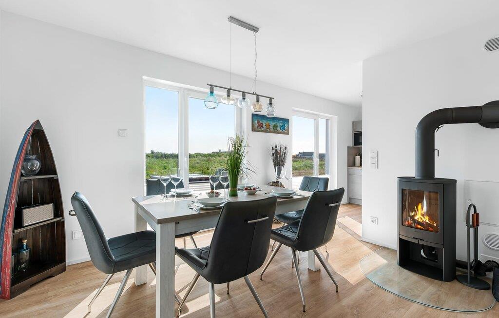 Die modern und gemütlich eingerichtete Ferienwohnung bietet Platz für 6 Personen. Der offene und großzügige Wohn- und Essbereich mit seinen bequemen Möbeln, dem Fernseher und Kaminofen lässt keine Wünsche offen. Und da man bei so einer Idylle damit rechnen muss, dass mal jemand zu Besuch kommt, lässt sich das Sofa mit nur wenigen Handgriffen zum Doppelbett umbauen.