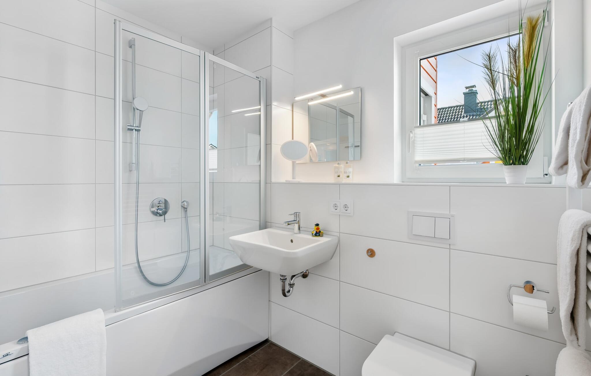 - WC mit warmem und kaltem Wasser, Dusche und Badewanne