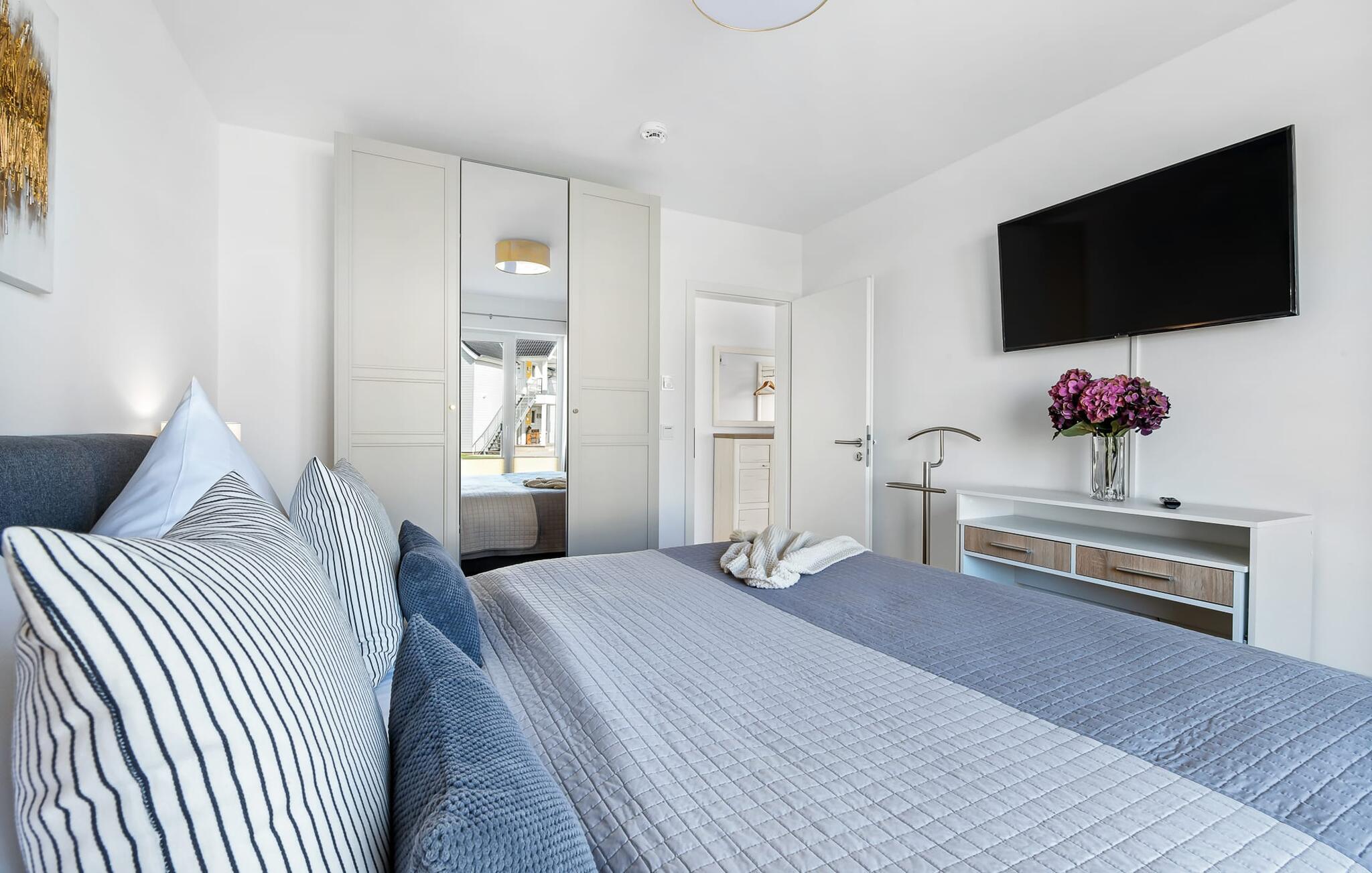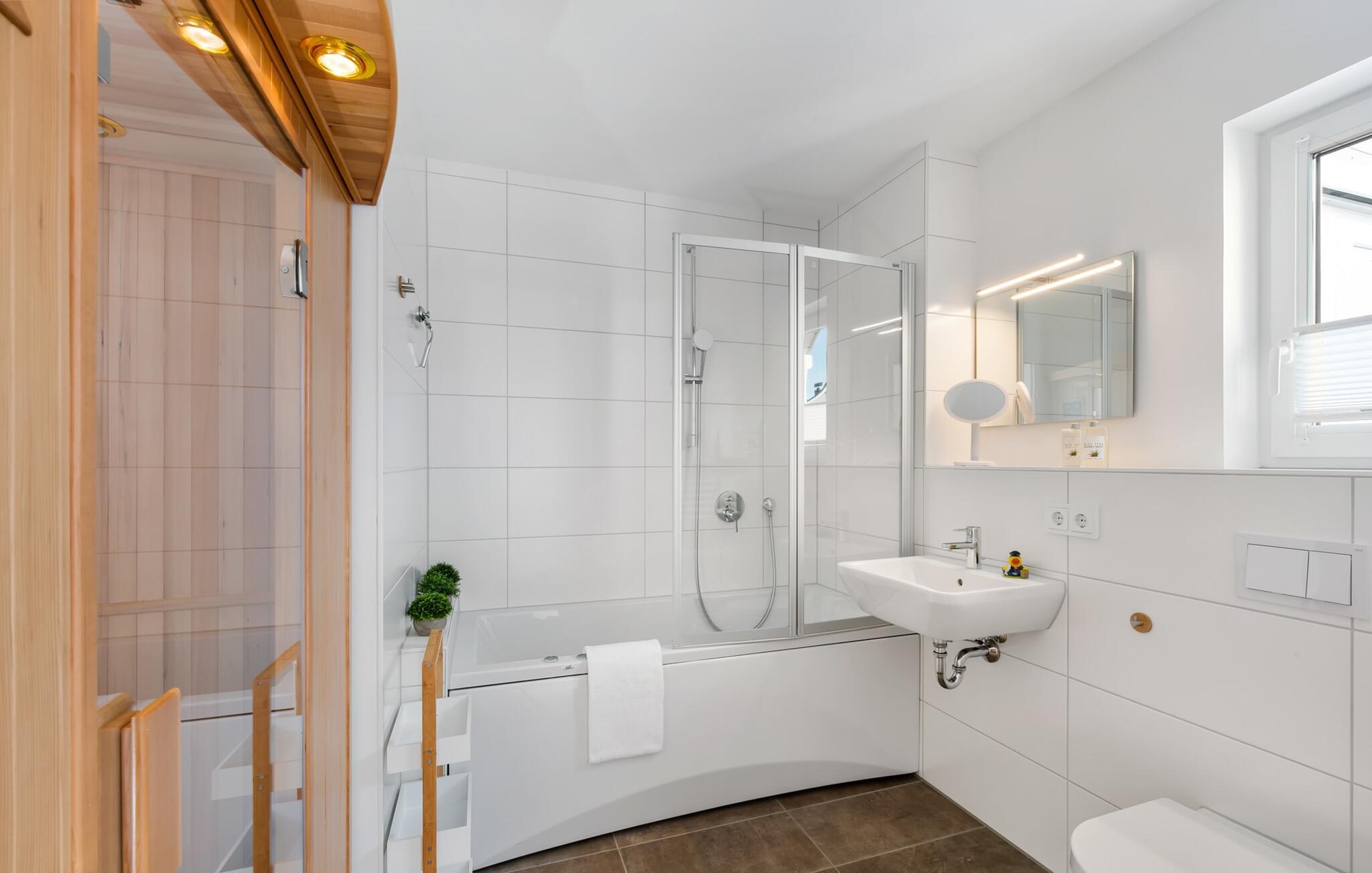 Energie sammeln für den bevorstehenden Tag könnt ihr entweder im komfortablen Schlafzimmer mit Doppelboxspringbett, Fernseher und davor liegender Terrasse oder im Schlafzimmer mit zwei Einzelbetten. Für ausreichend Stauraum ist gesorgt. Bei so viel Komfort wundert es einen nicht, dass auch das Badeszimmer etwas ganz Besonderes ist: neben einer Whirlwanne steht euch eine Sauna in Form einer Infrarotkabine zur Verfügung. Auch die weitere Ausstattung bietet alles was Man(n) und Frau fürs tägliche Wohlbefinden braucht.