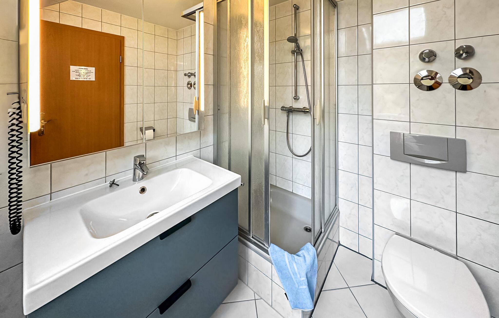 - WC mit warmem und kaltem Wasser, Dusche