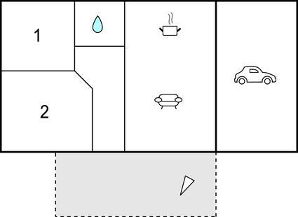 Badezimmer (nr. 1) - WC. Warmes und kaltes Wasser. Dusche