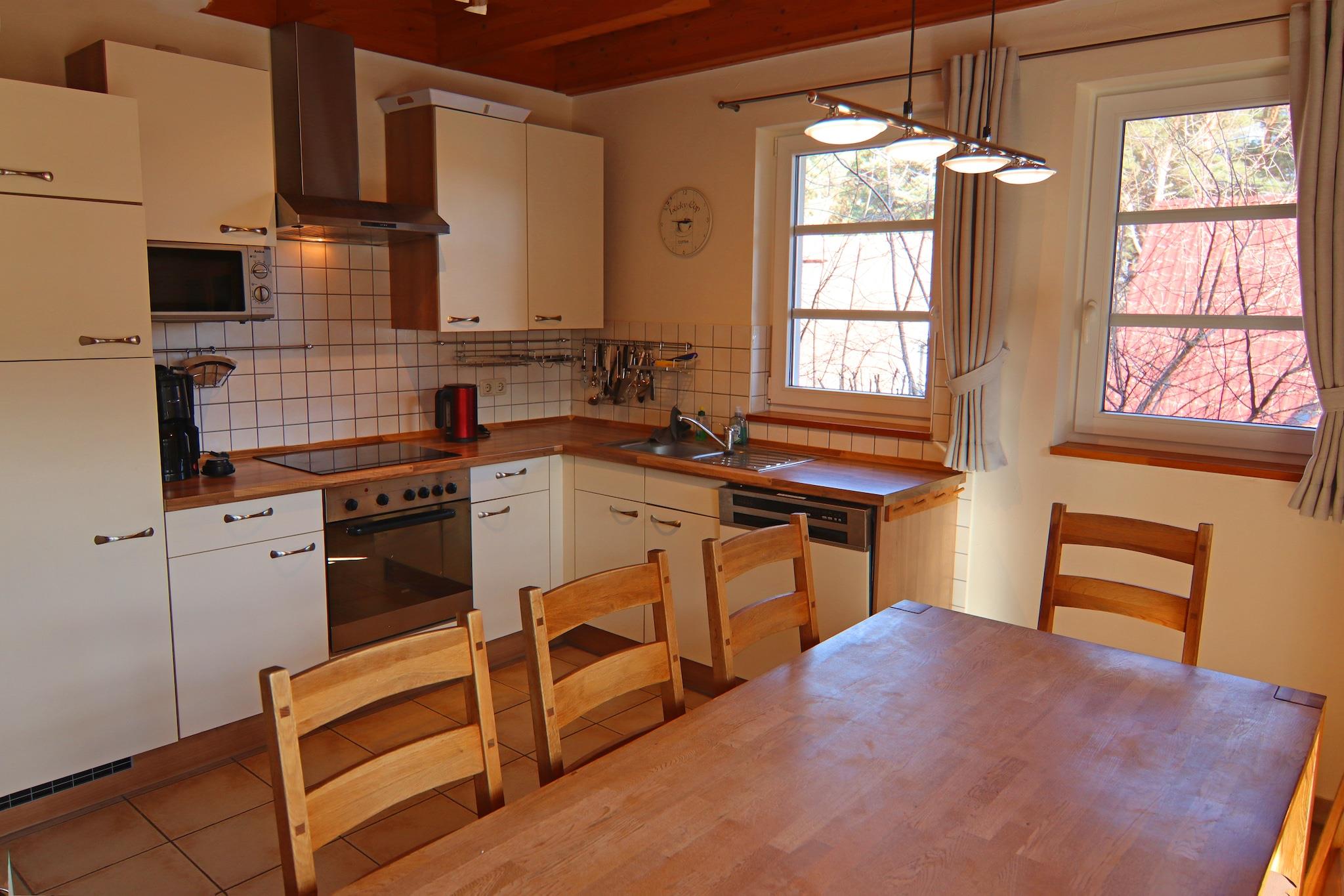 Parterre: (offene Küche(Esstisch, Kochplatte(Ceranfeld), Toaster, Kaffeemaschine, Backofen, Mikrowelle, Spülmaschine, Kühl-/Gefrierkombination), Wohn/Esszimmer(TV(Satellit), Radio, CD-Spieler), Schlafzimmer(Doppelbett), Badezimmer(Dusche, Toilette), Waschmaschine) In der 1. Etage: (Schlafzimmer(Doppelbett), Schlafzimmer(2x Einzelbett), Badezimmer(Dusche, Toilette), Sauna(alleinige Nutzung)) Dachgeschoss: (Schlafzimmer(2x Einzelbett)) Heizung(Fußbodenheizung), Terrasse, Gartenmöbel, Parkplatz, Parkplatz, Hochstuhl, Babybett (kostenpflichtig), Handtücher/Bettwäsche (extra Gebühr)