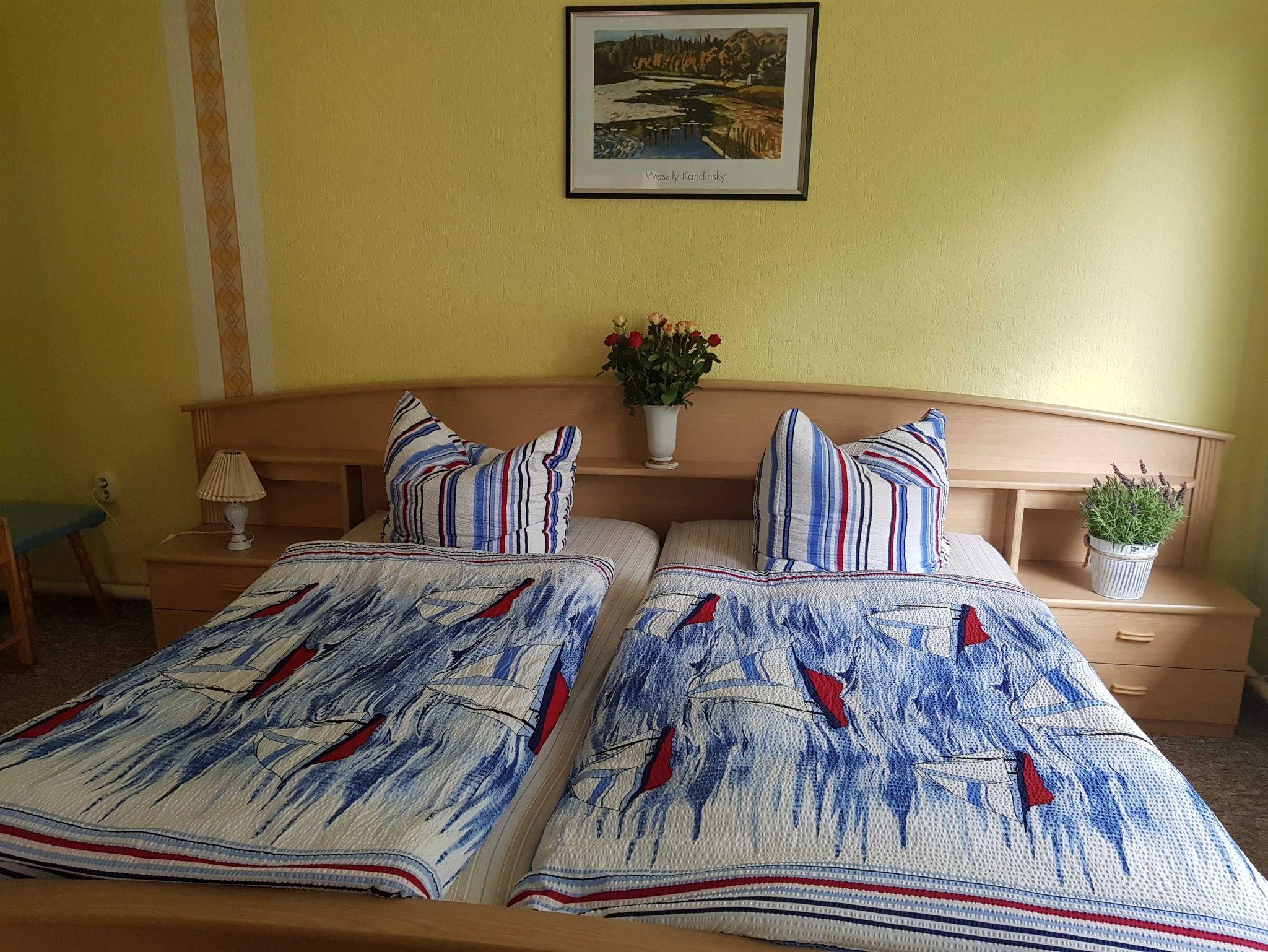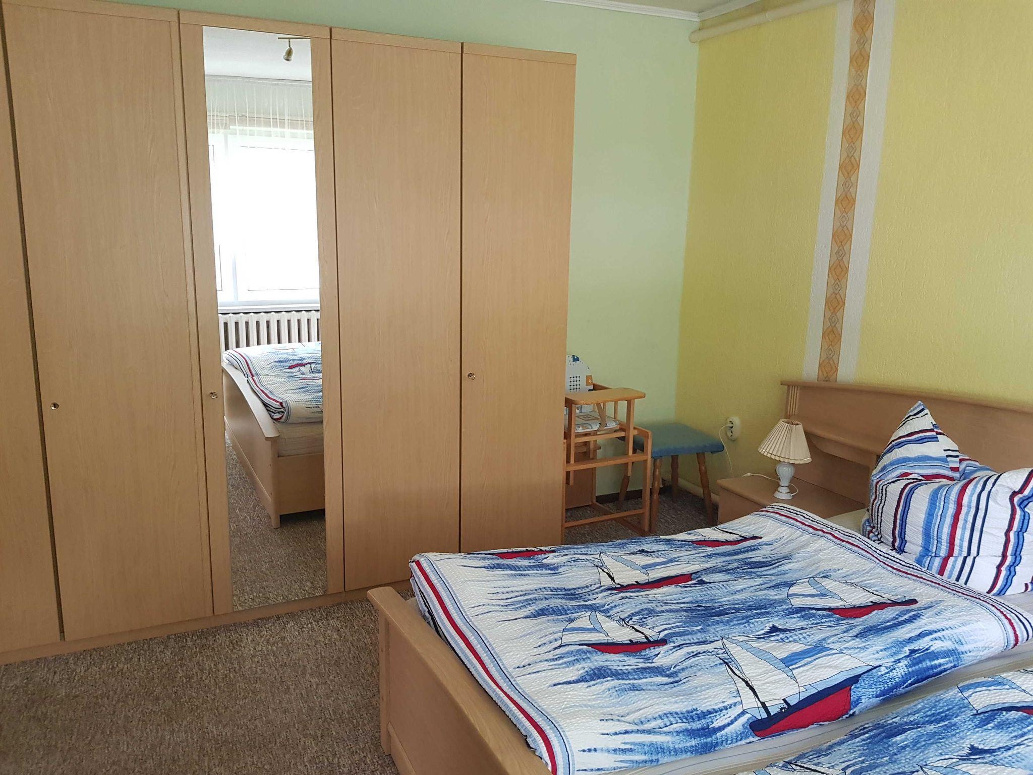 Das Ferienhaus ist mit 2 Schlafräumen ausgestattet.Ein Schlafraum verfügt über ein Doppelbett und einem Kinderbett. Das andere Schlafzimmer verfügt über ein Doppelbett. Das geräumige Wohnzimmer verfügt über ein Schlafsofa.Babybett ist vorhanden.