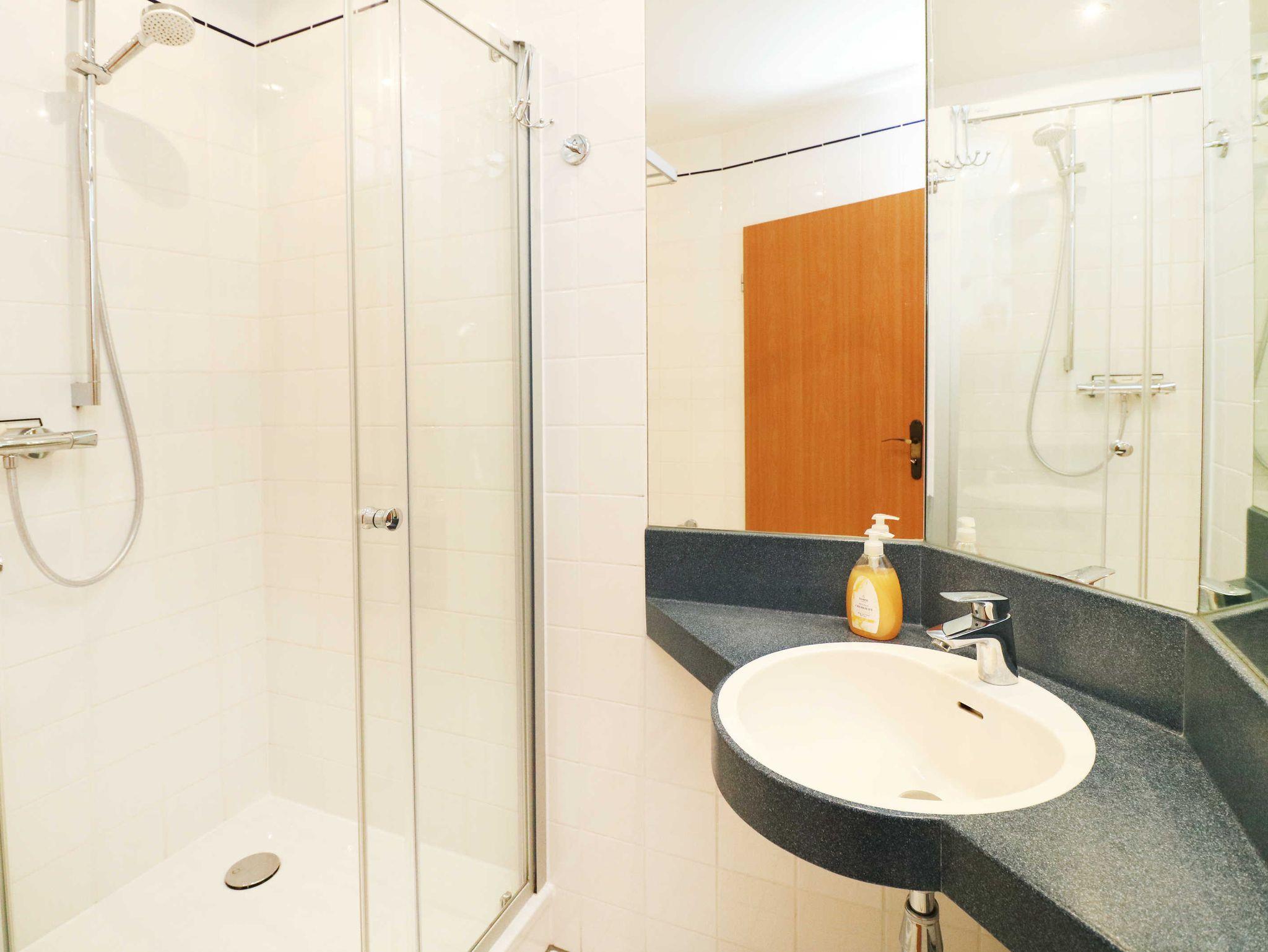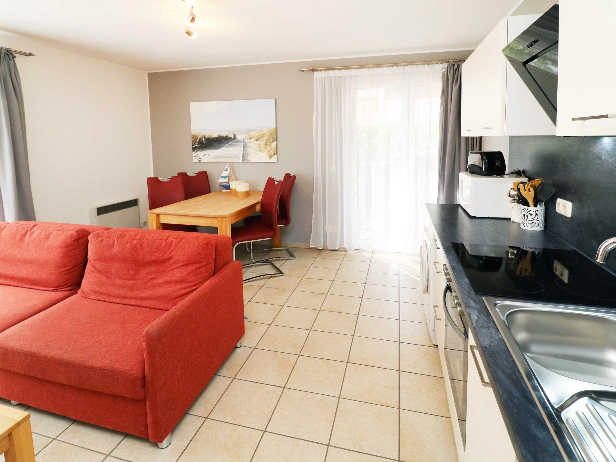 Die komplett ausgestattete Küche mit Essecke geht nahtlos in den Wohnbereich über. Die beiden Schlafzimmer und das Duschbad erreicht man über einen kleinen Flur. Eines der Schlafzimmer verfügt über ein Doppelbett 2 x 80 x 200 cm. Zwei Einzelbetten stehen Ihnen im zweiten Schlafzimmer zur Verfügung.
