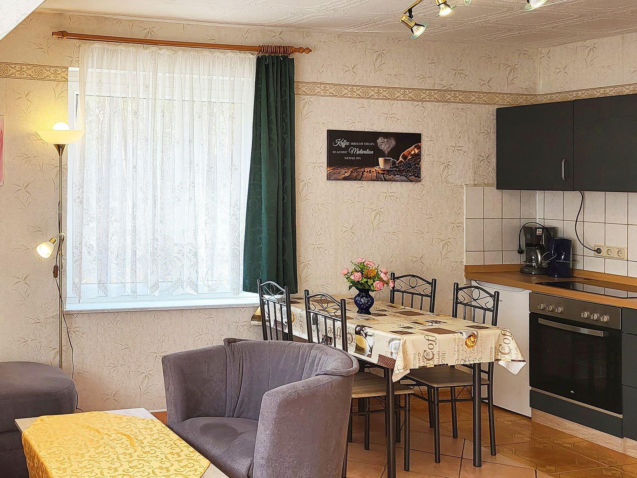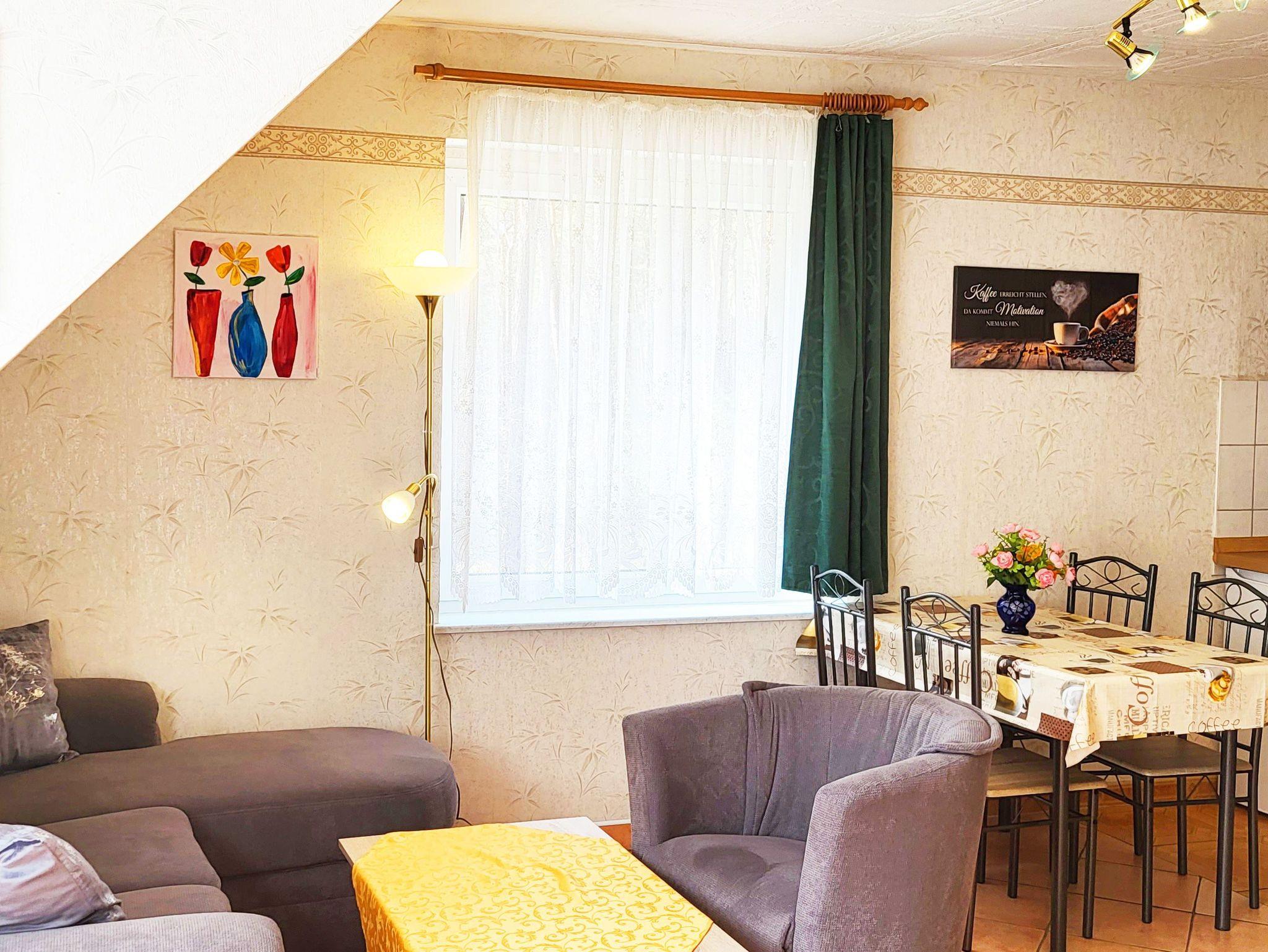 3 Raum-Wohng., 2 SZ, Küche, Wohnzimmer, Bad mit Dusche/WC, Flur, Balkon, Terrasse. Frühstücksbüfett mit Voranmeldung möglich und auch Abendessen à la carte. Haustiere nur auf Anfrage!