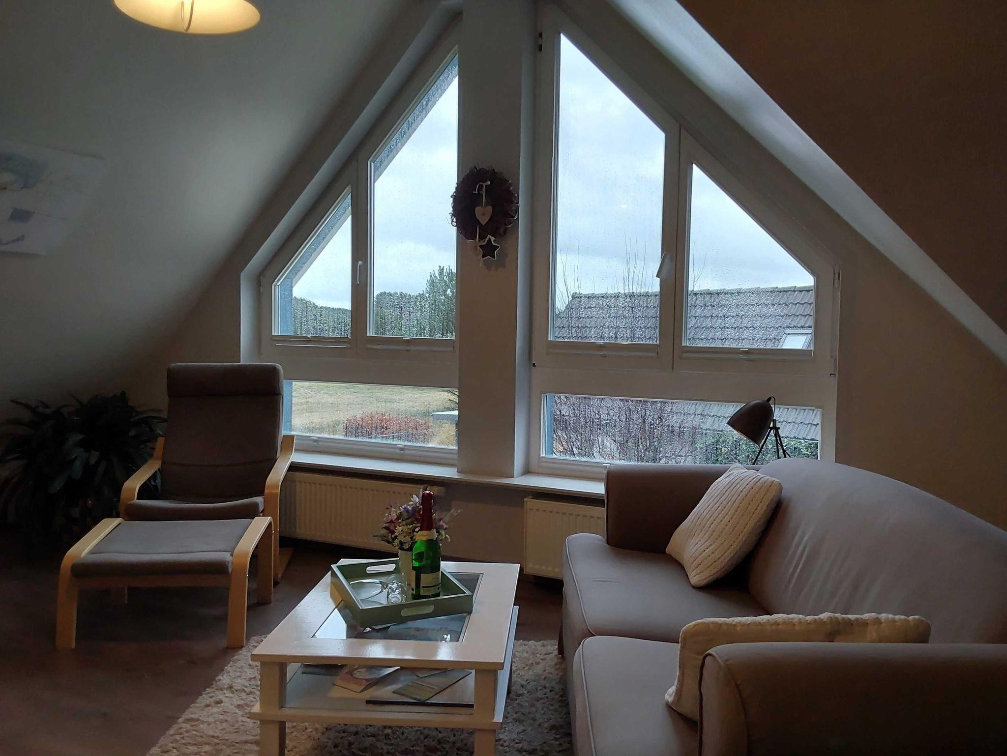 Die Ferienwohnung befindet sich im Obergeschoss eines neu erbauten Hauses im Wohngebiet Am Walde.Es steht auf einem großen Außengrundstück am Wiesen- und Waldrand. Von der Ferienwohnung haben Sie einen wunderschönen freien Blick über den Garten, angrenzenden Wiesen und den nahen Kiefernwald ( dahinter befindet sich der Ostseestrand). Absolute Ruhe und Entspannung finden Sie hier auch in der Hauptsaison.