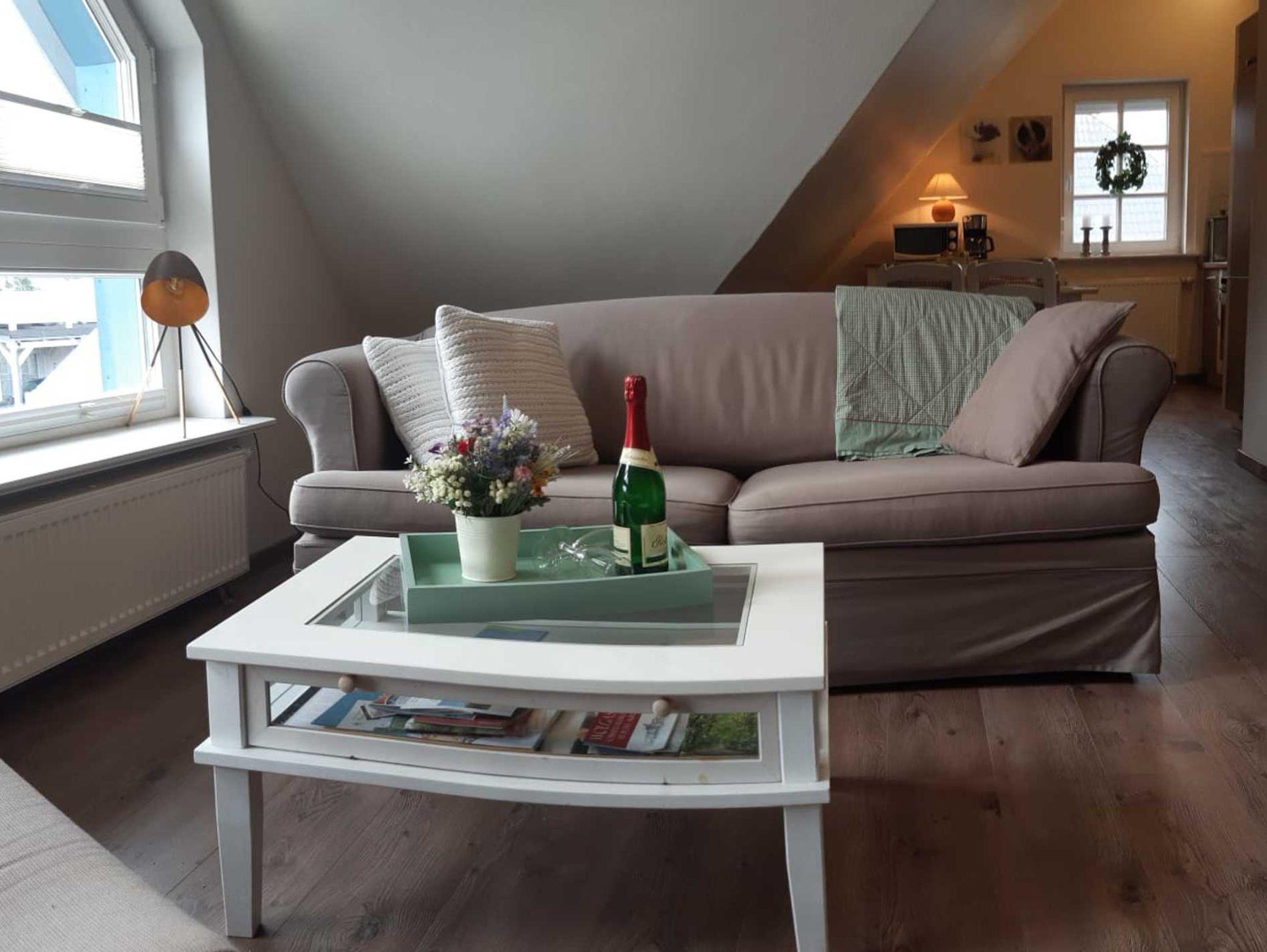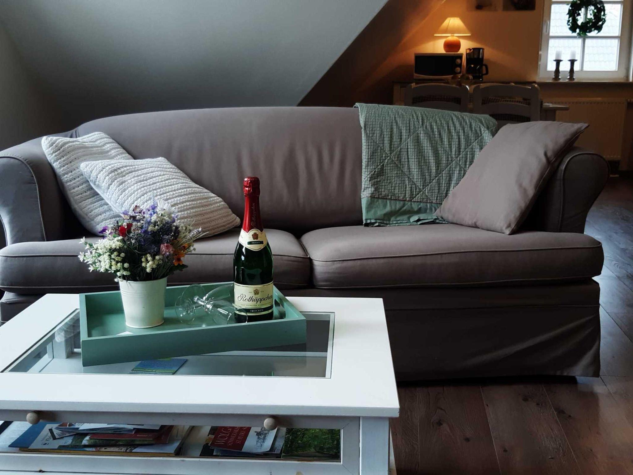 Durch Nutzung der Schlafcouch (150x190cm) im Wohnbereich ist die Wohnung auch für 3 Personen geeignet.
