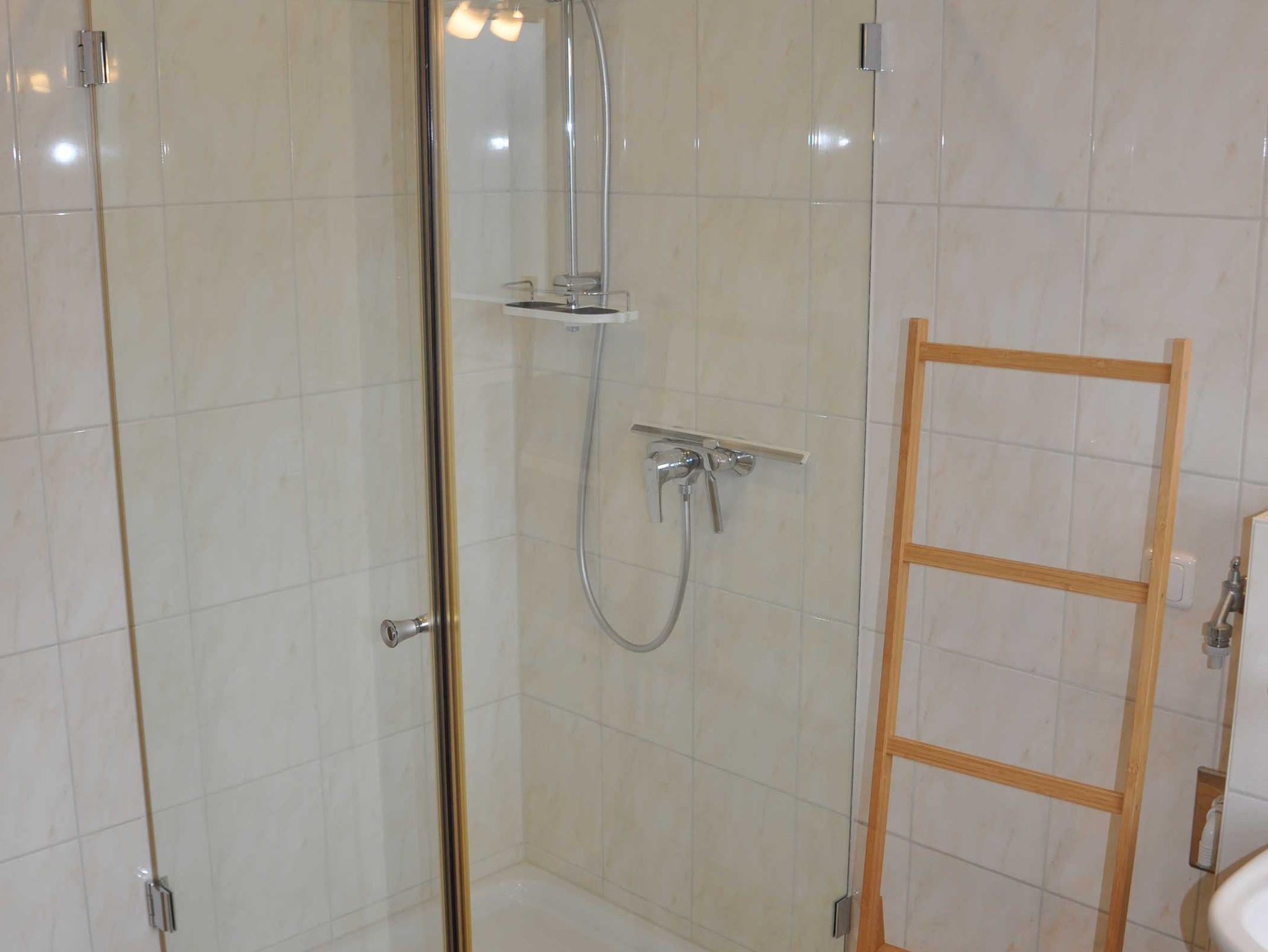 Unsere 3-Raum-Wohnung ist ca. 75 m² groß und exklusiv eingerichtet. Sie hat einen großen Wohnbereich mit Couch und 2 Sesseln sowie eine voll ausgestattete Küche mit Esstisch. Es gibt zwei getrennte Schlafzimmer mit jeweils einem Doppelbett. In der Küche finden Sie einen Ceranherd mit Backofen, Mikrowelle, Toaster, Kaffeemaschine, Wasserkocher, Kühlschrank und Spülmaschine. Das Bad/WC ist mit einer Dusche, einem Fön und eine Waschmaschine ausgestattet.