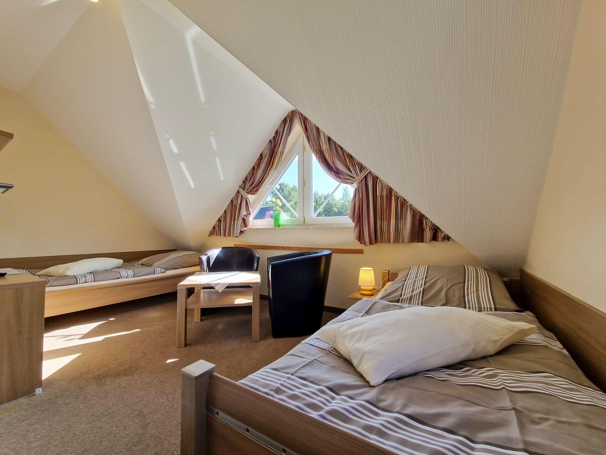 Im Obergeschoss befinden sich die beiden Schlafzimmer: eines mit einem gemütlichen Doppelbett und das andere mit zwei Einzelbetten.