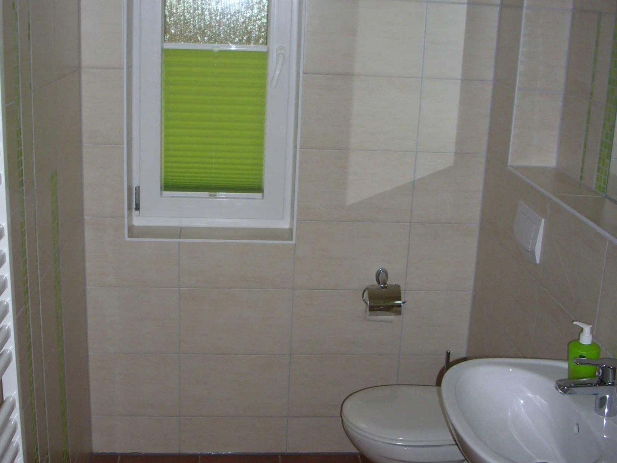 Das Bad ist barrierefrei mit ebenerdiger Dusche, es gibt noch eine zusätzliche Toilette,