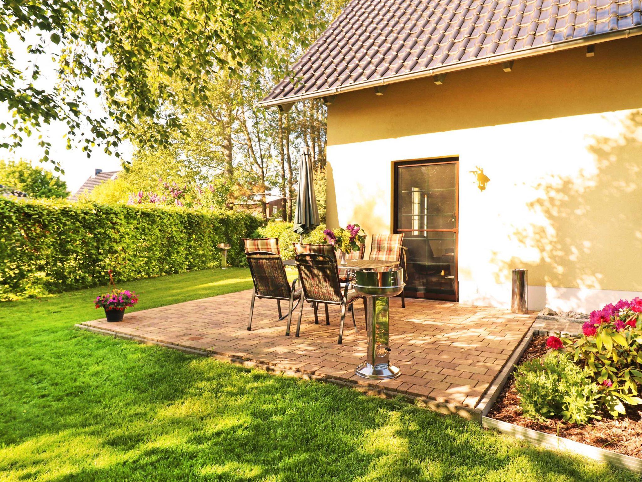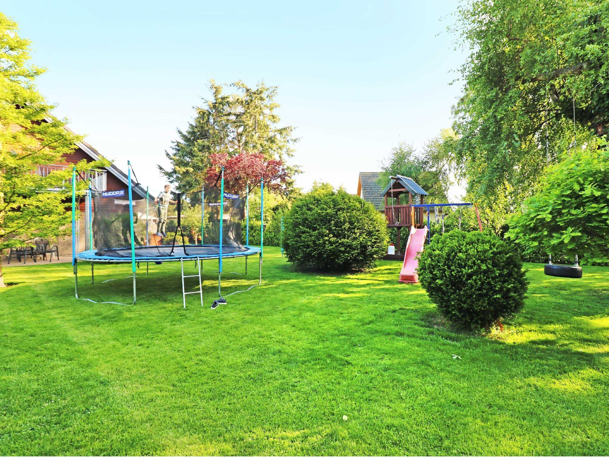 Der vollständig umzäunte Garten, der Spielbereich mit einem Trampolin und einem kleinen Baumhaus kann während Ihres Aufenthaltes von Ihren Kindern genutzt werden. Mit dem nur 1 km entfernten Kinderland ist das Objekt ideal für einen Familienurlaub geeignet. Ein PKW-Stellplatz ist vorhanden.