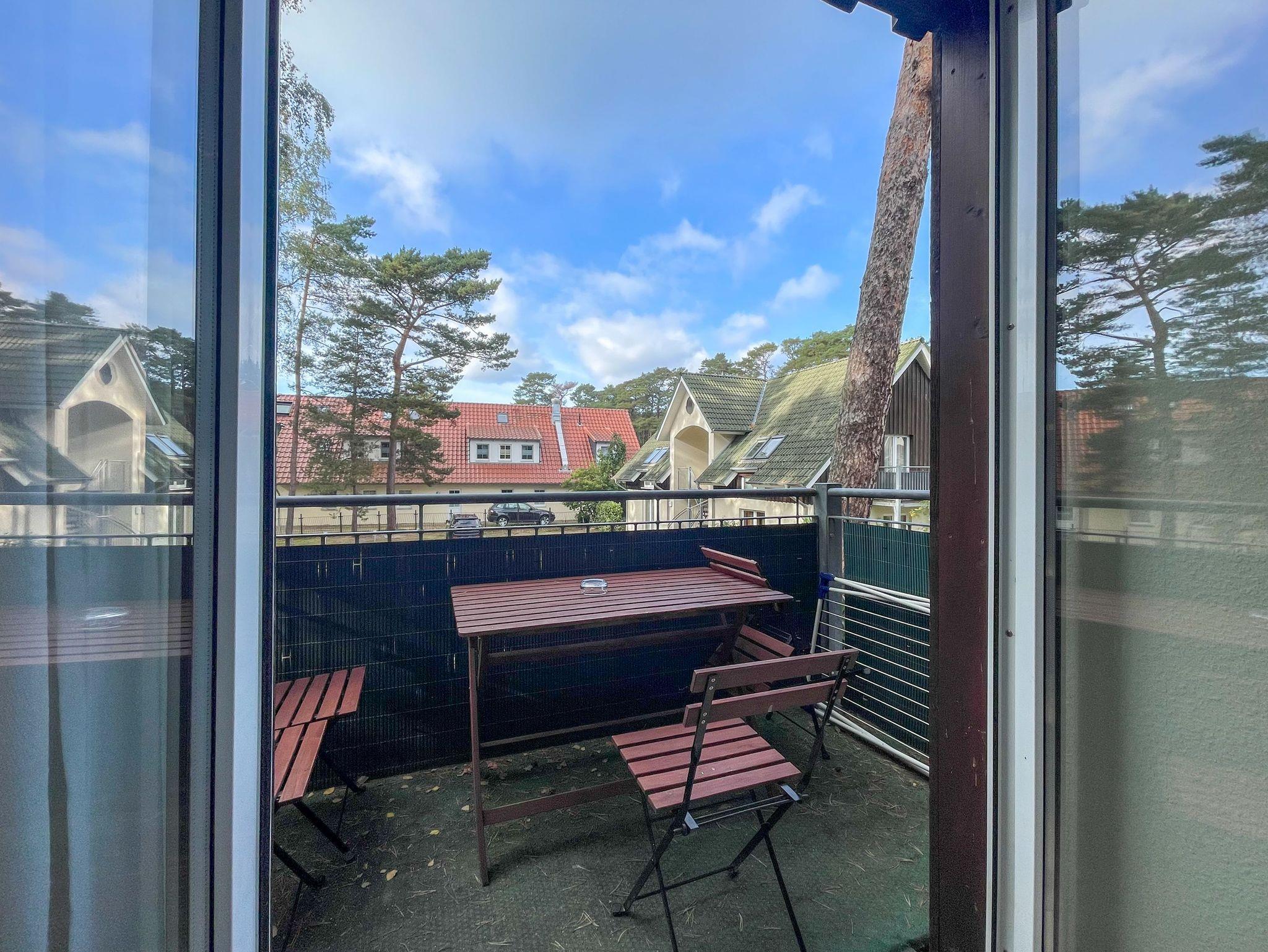 Familienfreundliche Ferienwohnung in Trassenheide, 300 m vom Strand, mit Balkon und Blick auf den Küstenwald.