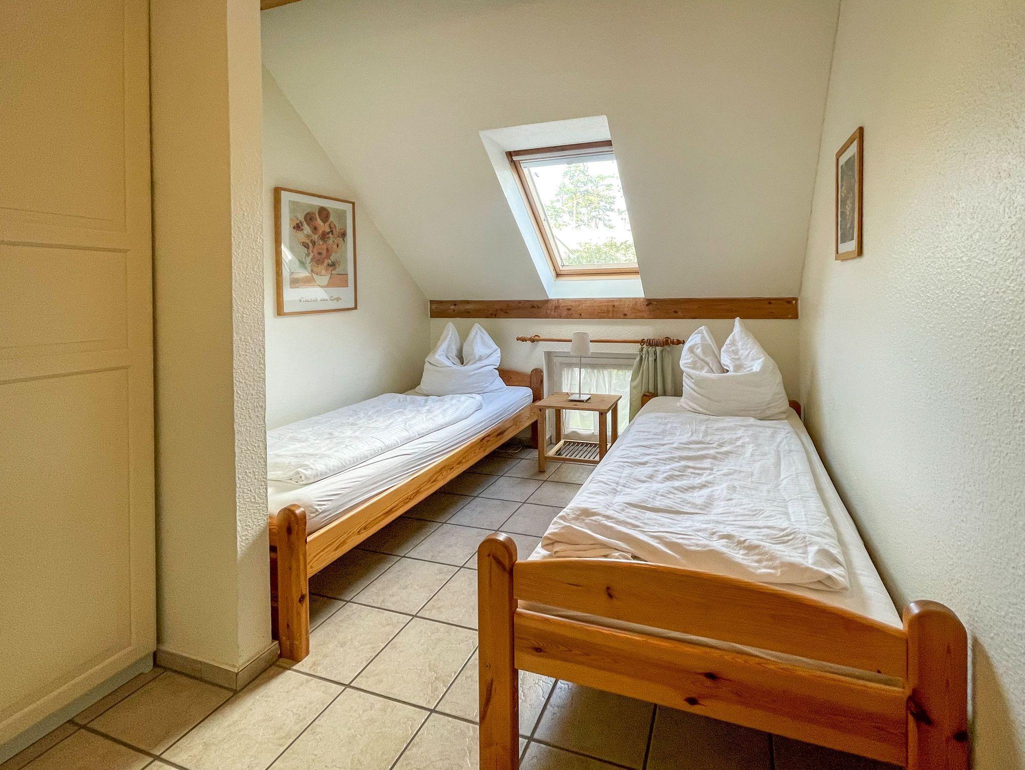 Neben dem Wohnzimmer liegt ein Schlafzimmer mit zwei Einzelbetten (je 100x200cm), einem großen Kleiderschrank und einer Kommode mit einem kleinen Flat-TV. Anschließend finden Sie das zweite Schlafzimmer mit einem großen Doppelbett (zwei Matratzen je 90x200cm) und einem Sideboard. Für die kleinen Gäste steht ein Reisebett und ein Hochstuhl kostenfrei zur Verfügung. Wäschepakete können Sie kostenpflichtig dazu buchen, geben Sie dies bitte bei der Buchung mit an.
