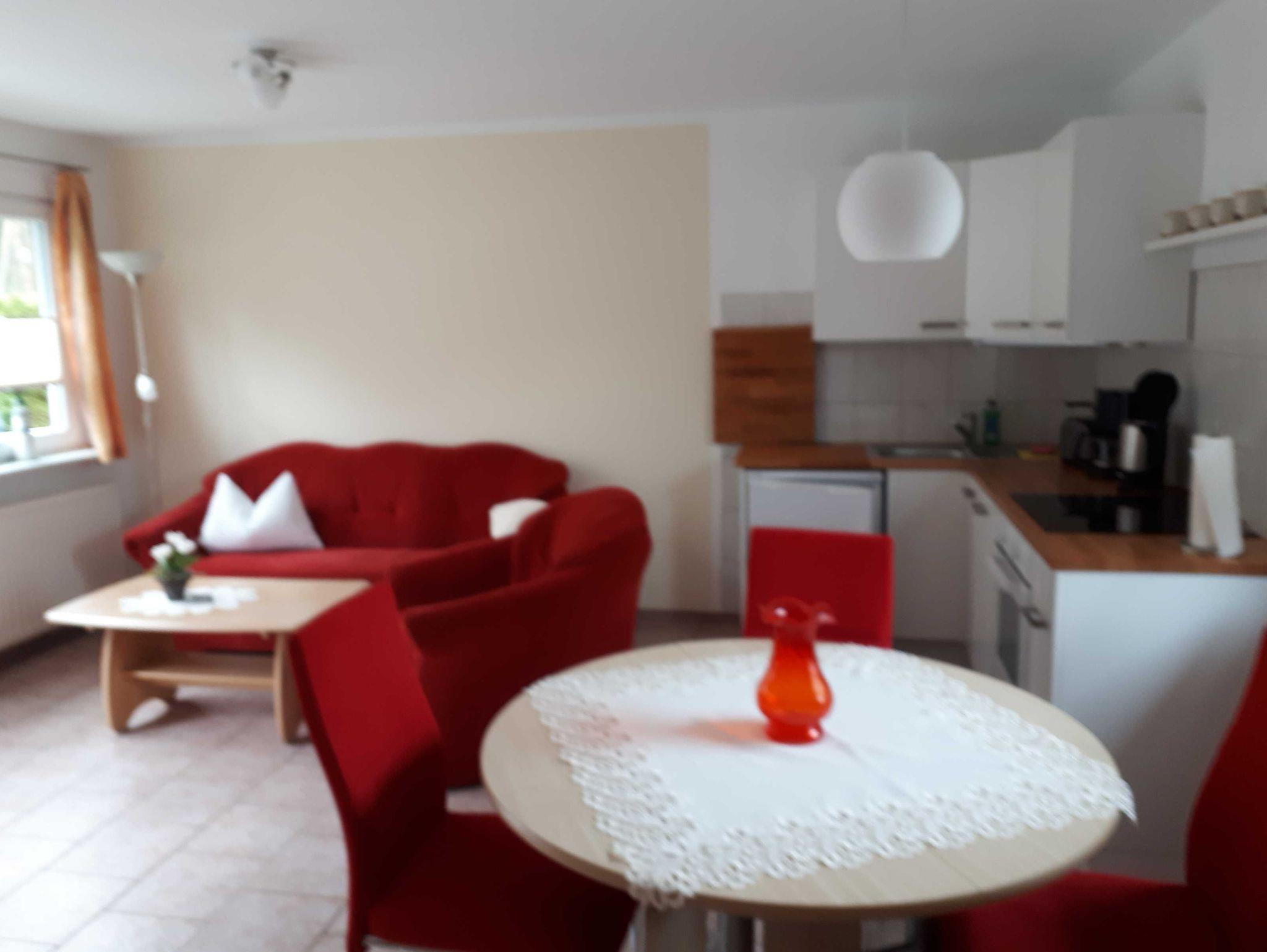 Das Ferienhaus ist ausgestattet mit WC/DU, einem Schlafzimmer für 2 Pers.und eine Aufbettung für eine 3.Person im Wohnzimmer, eine Küche mit Backofen und Spülmaschine , sowie Wohnzimmer mit SAT-TV /Radio. Das Haus hat Heizung (Gasheizung) und eine Terrasse mit Gartenmöbeln. Parkplatz, Grillmöglichkeit sowie Kinderspielplatz mit Tischtennis und eine Liegewiese sind auf dem Grundstück vorhanden.