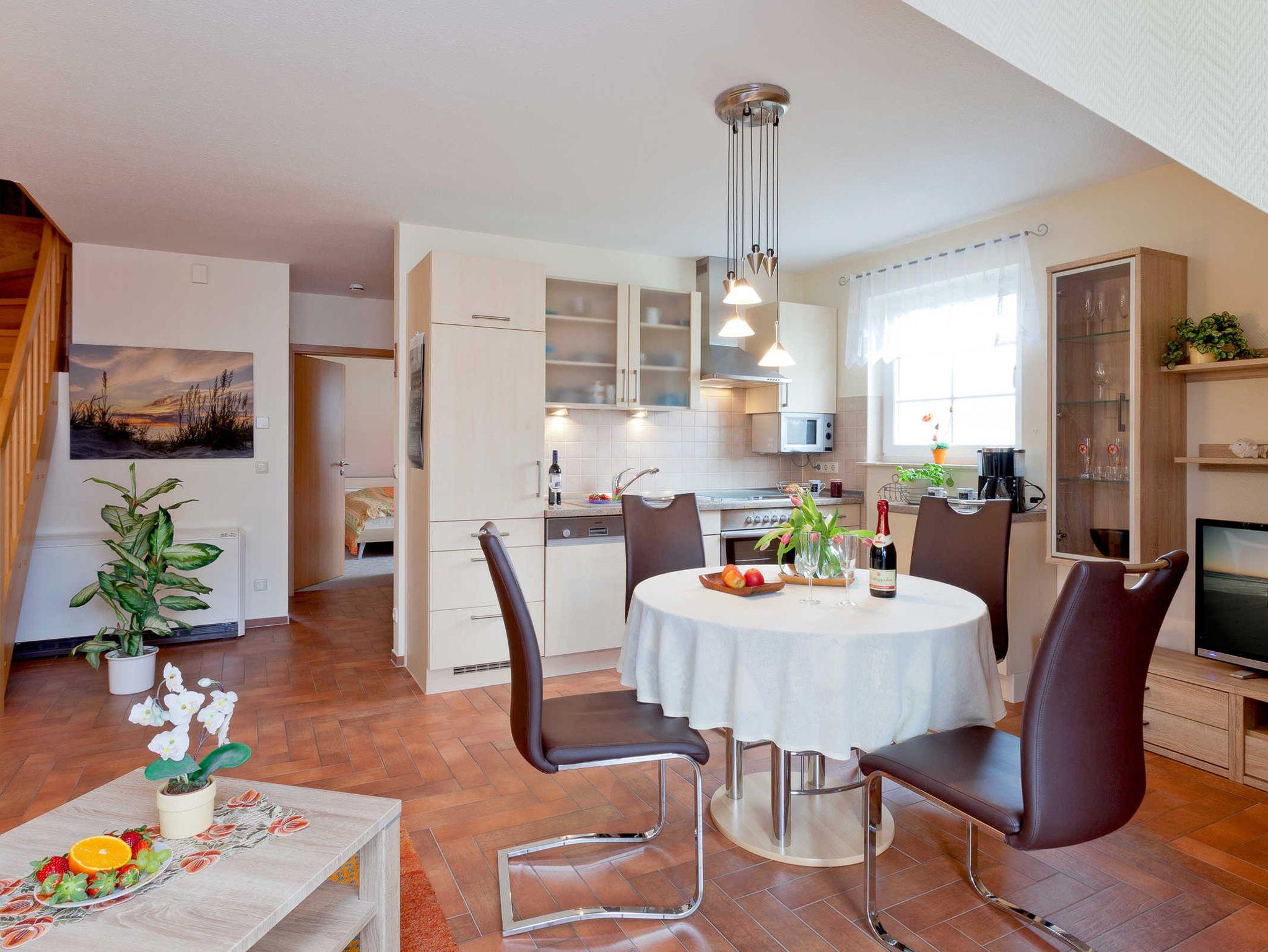 Die Ferienwohnung liegt sehr ruhig und hat eine schöne sicht auf das Umland. Auf der Wiese kann man allerhand Wildtiere und Vögel beobachten. Die Wohnung ist kompl. ausgestattet mit 2 Schlafzimmer,WC/Dusche, Küchenzeile incl.Mikrowelle,Backofen ect. Auf dem Balkon zur Südseite befinden sich gemütliche Terassenmöbel zum verweilen.