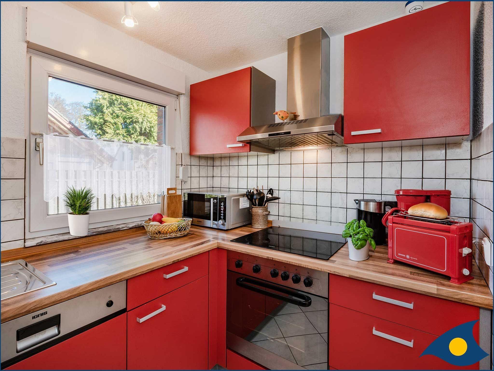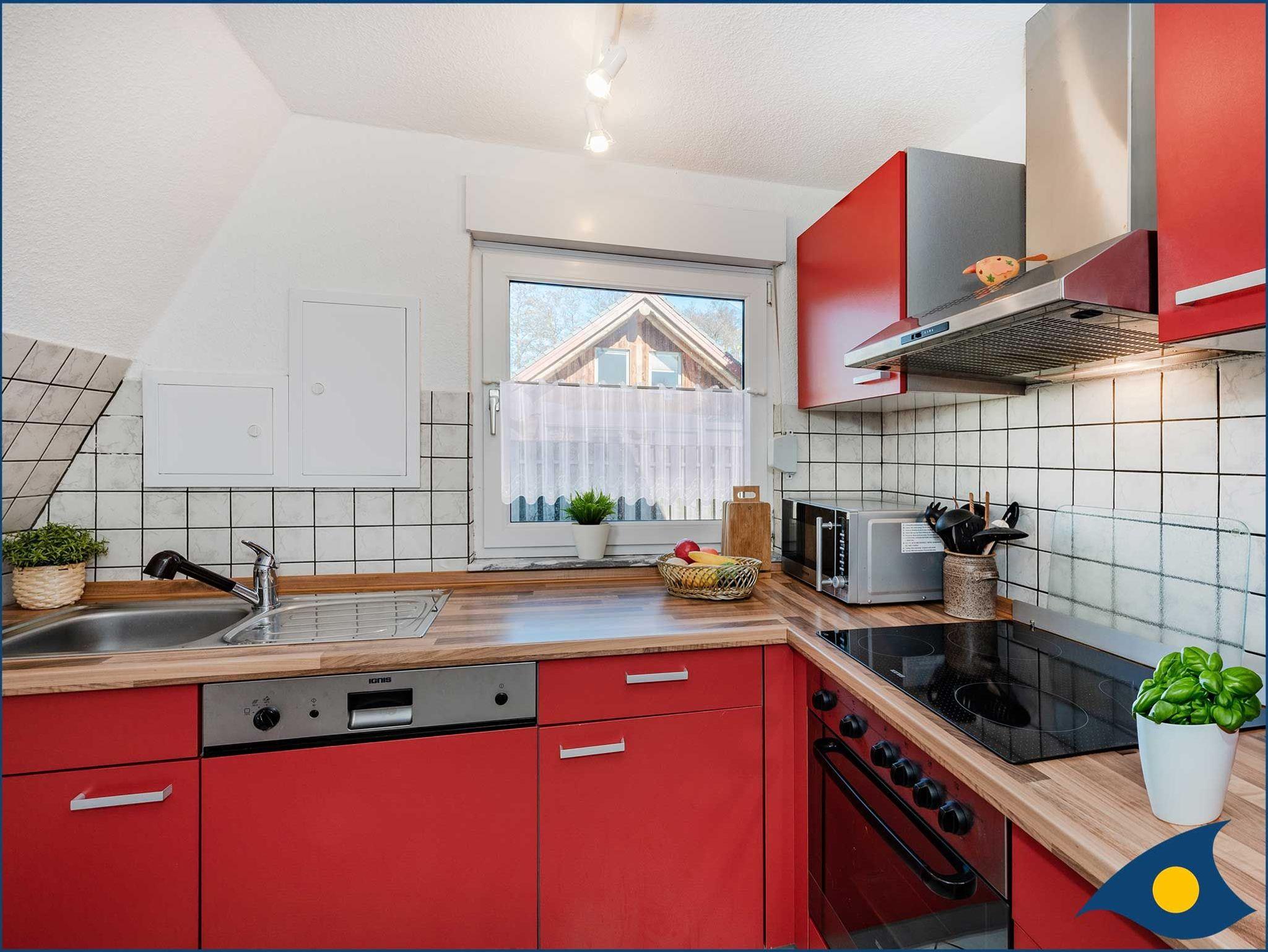 Die moderne separate Küche mit Ceranherd, Geschirrspüler, Kühl- und Gefrierschrank, Mikrowelle, Kaffeemaschine, Toaster, Wasserkocher, Dunstabzugshaube und das Badezimmer mit Dusche, Waschbecken und WC tragen ebenfalls zum Wohlfühlen bei.