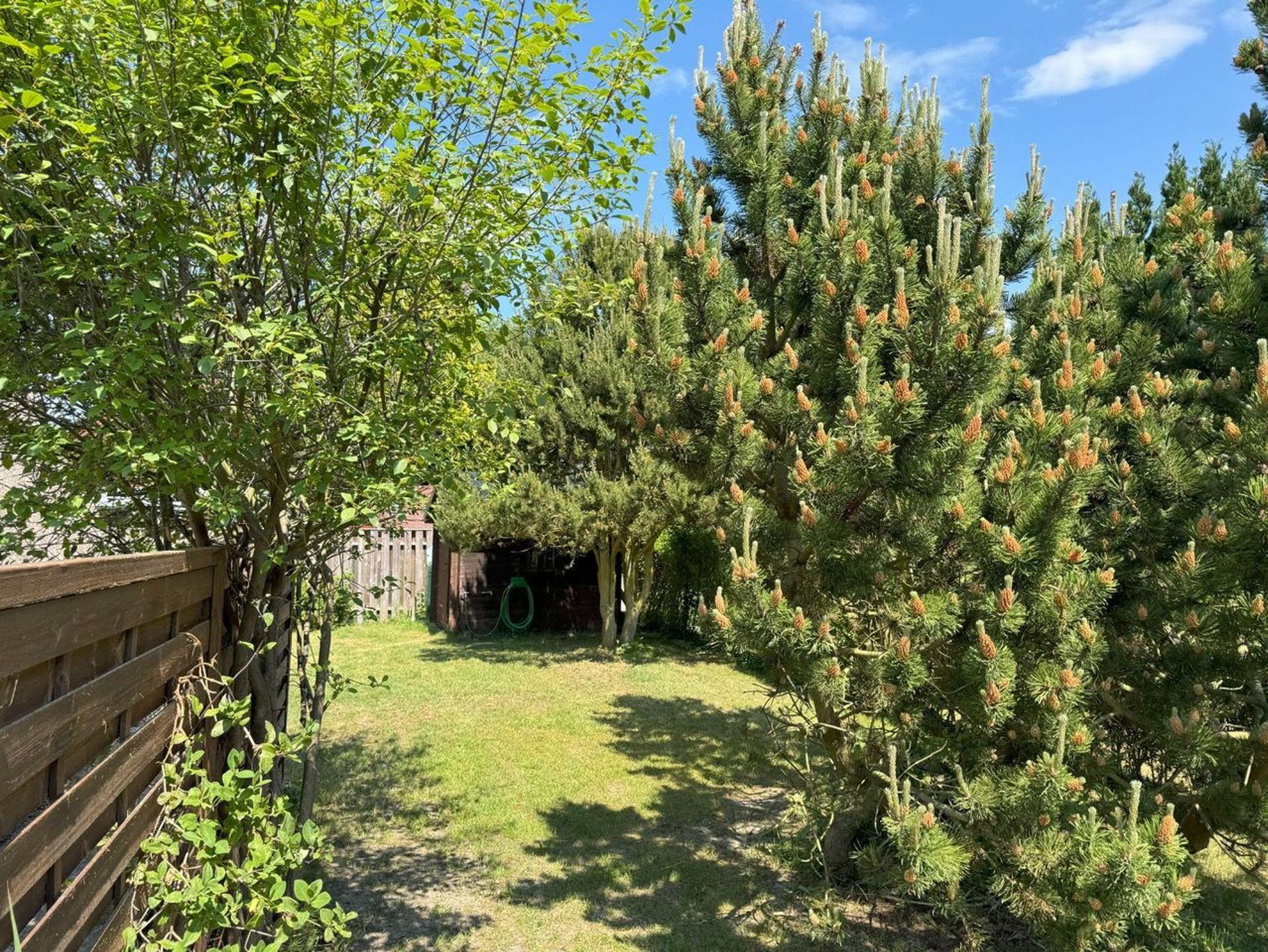 Das sonnige Grundstück mit Rasen, einer großen Terrasse samt Liegen, Tisch, Stuhlsesseln und Sonnenschirm laden zum Entspannen ein. Ein Schuppen mit Grill steht kostenlos zur Verfügung. Ein Carport zzgl. zweitem PKW-Stellplatz kann gerne genutzt werden.