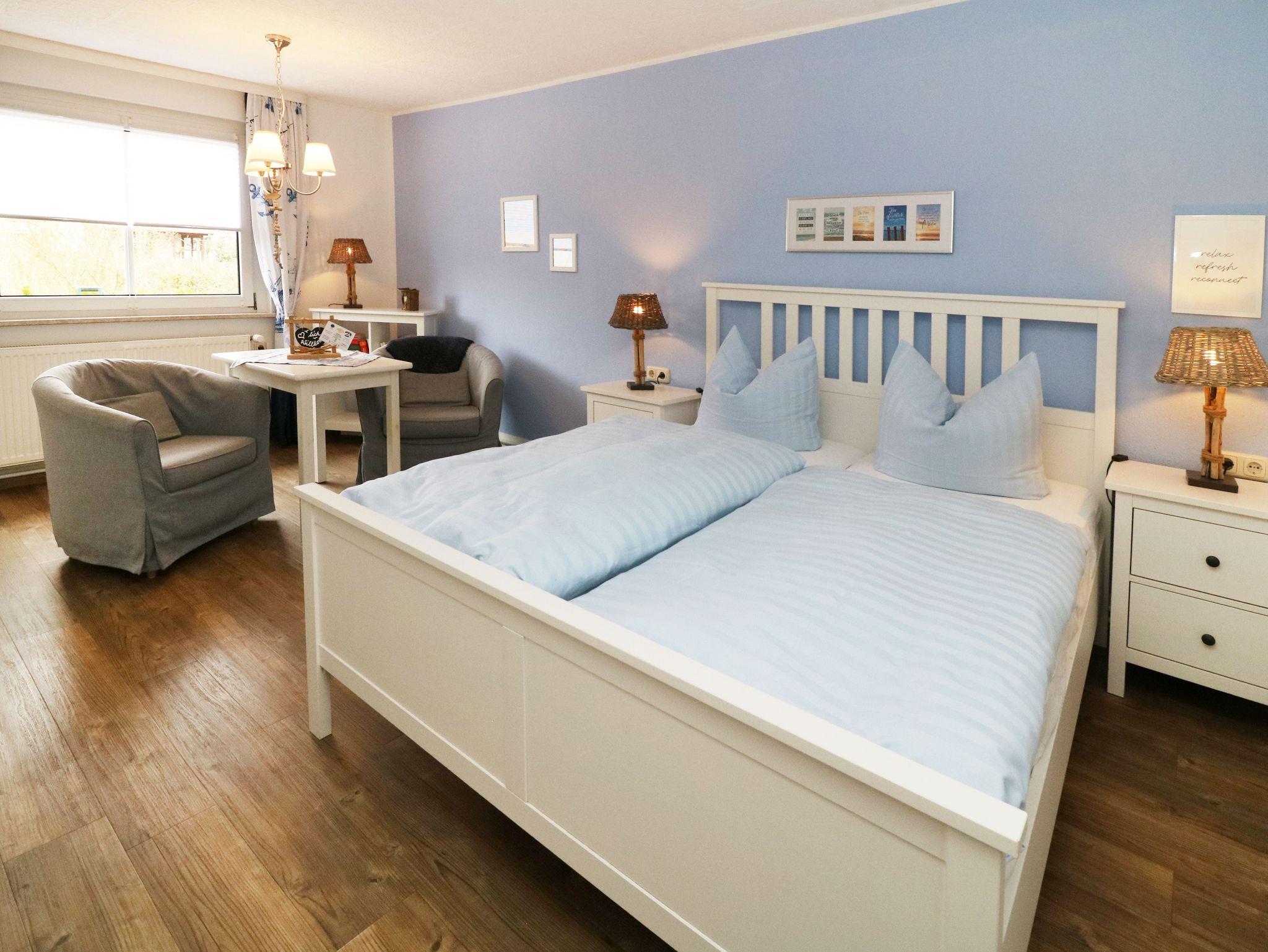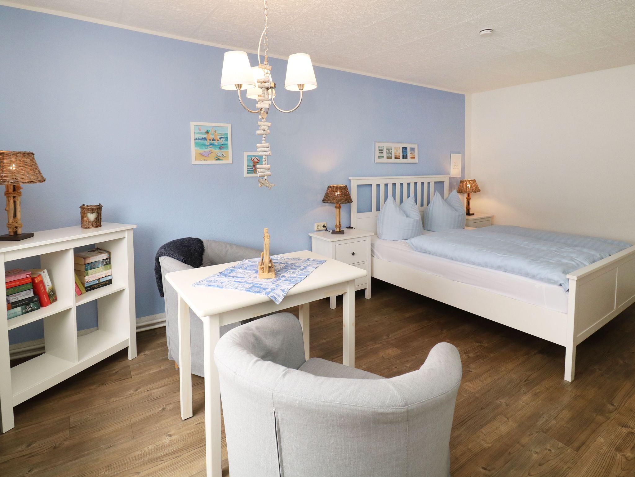 • 1-Raumferienwohnung mit Doppelbett, 2 Sesseln und einem Essbereich