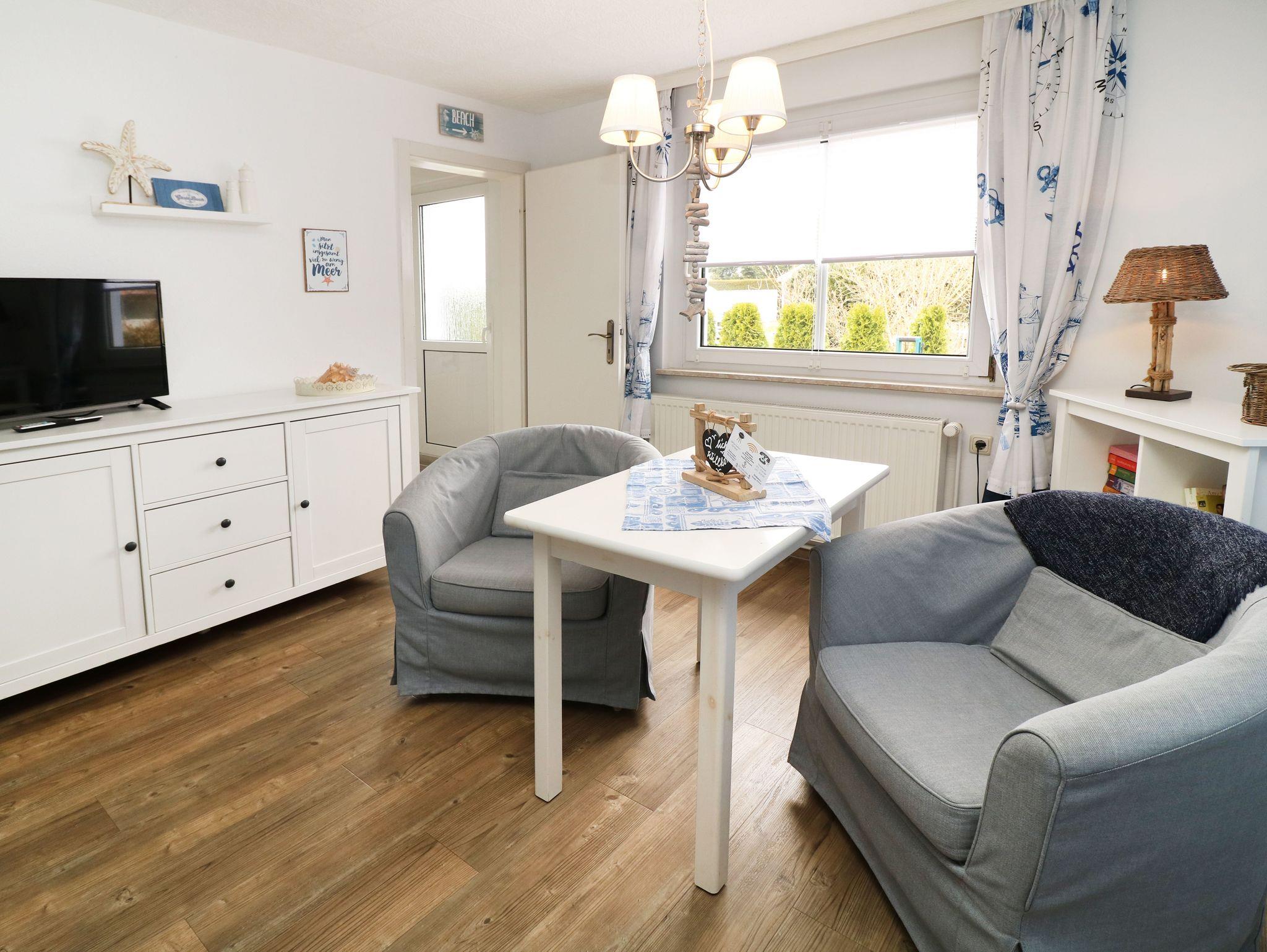 Erleben Sie maritime Gemütlichkeit in der 1-Raum-Ferienwohnung Koje 3 auf Usedom mit Terrasse und Gartenblick.