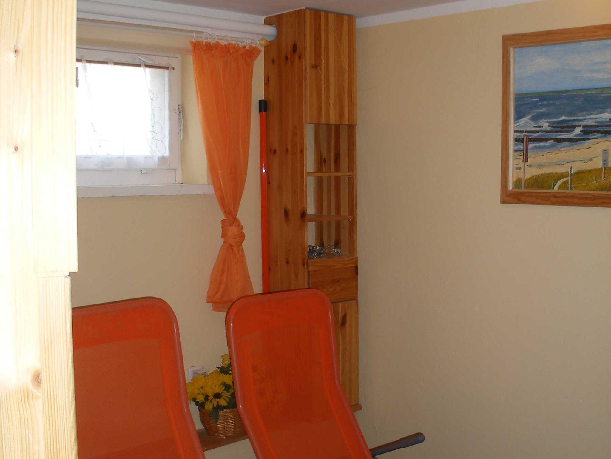 Der Eingangsbereich ist mit Fitneßgeräten ausgestattet,dort befindet sich auch der Relaxbereich für die Sauna - Nutzung.
