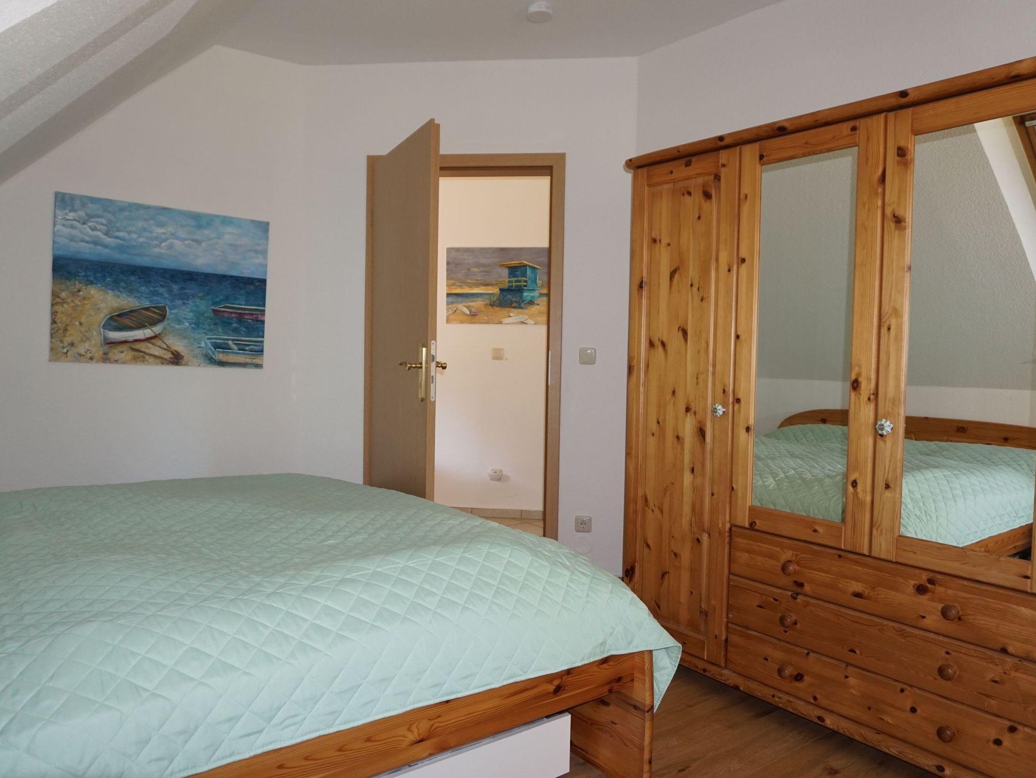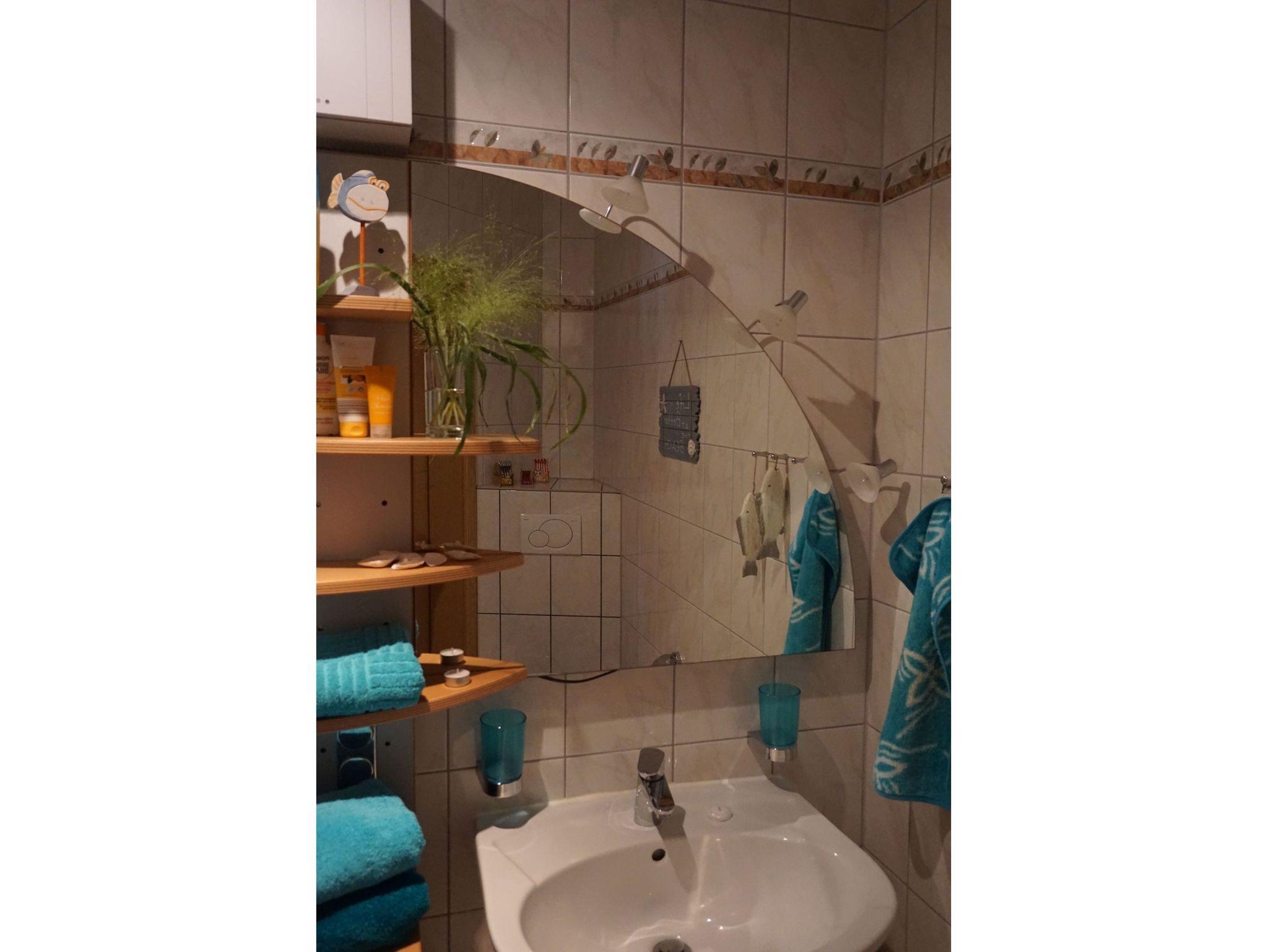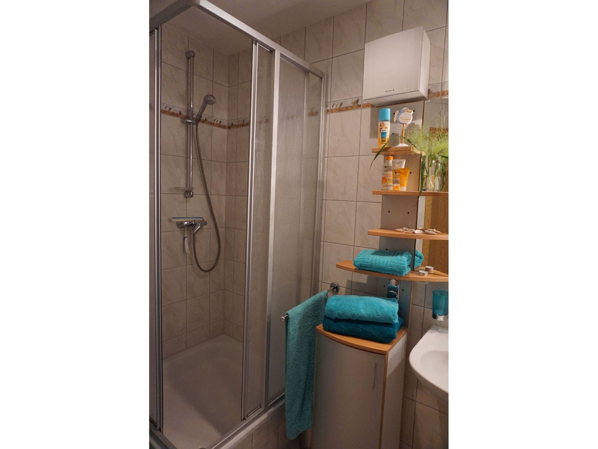 Über einen separaten Aufgang erreichen Sie im 1. Obergeschoss die gemütliche ca. 45 qm große Nichtraucher-Wohnung. Die Wohnräume (kombiniertes Wohn-/Ess-Zimmer mit Küchenzeile, Schlafzimmer, Duschbad und Flur) sind liebevoll eingerichtet.