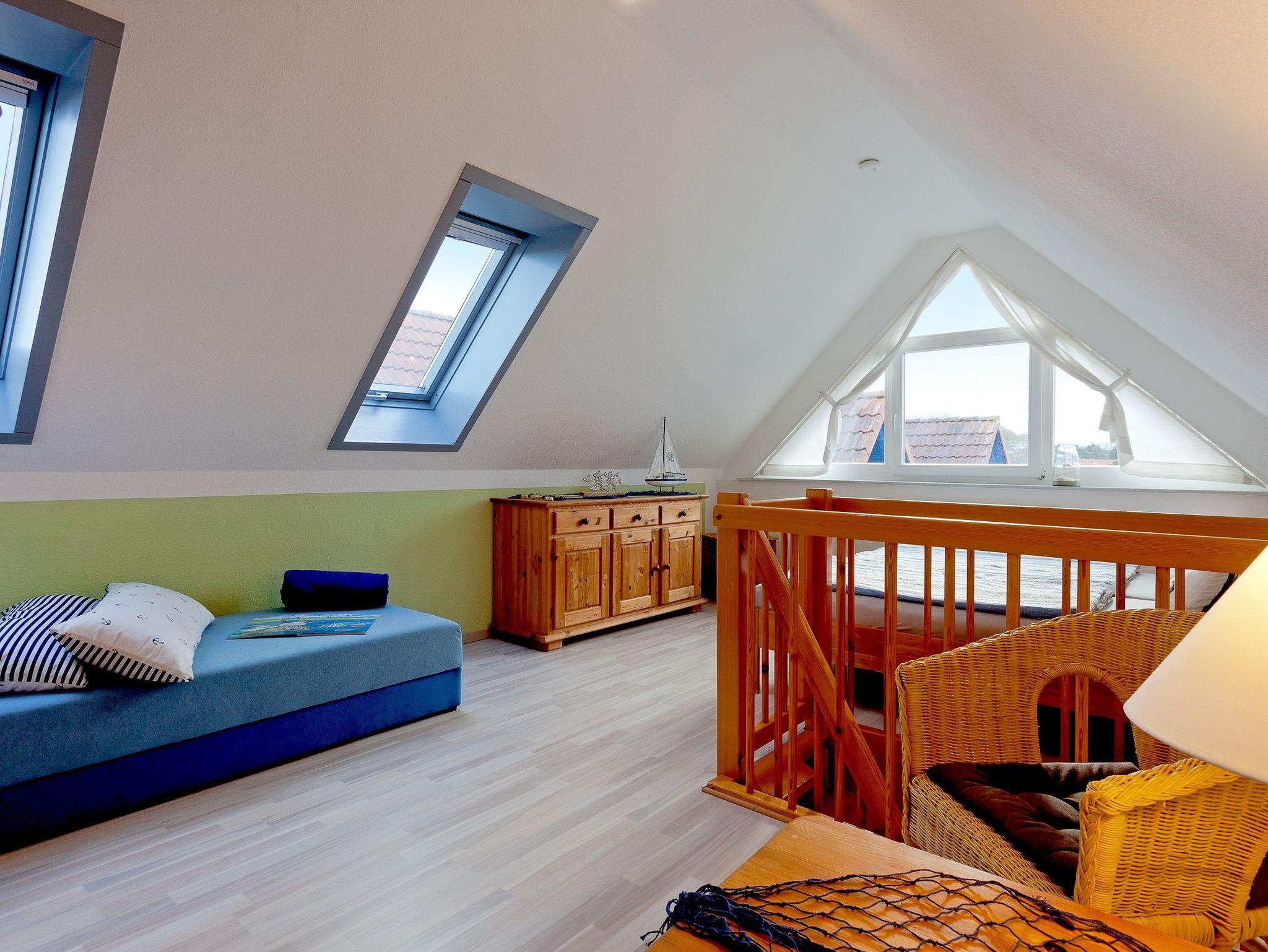 • das zweite großzügige Schlafzimmer mit Doppelbett, Einzelliege, kleiner Sitzecke befindet sich im Dachgeschoss