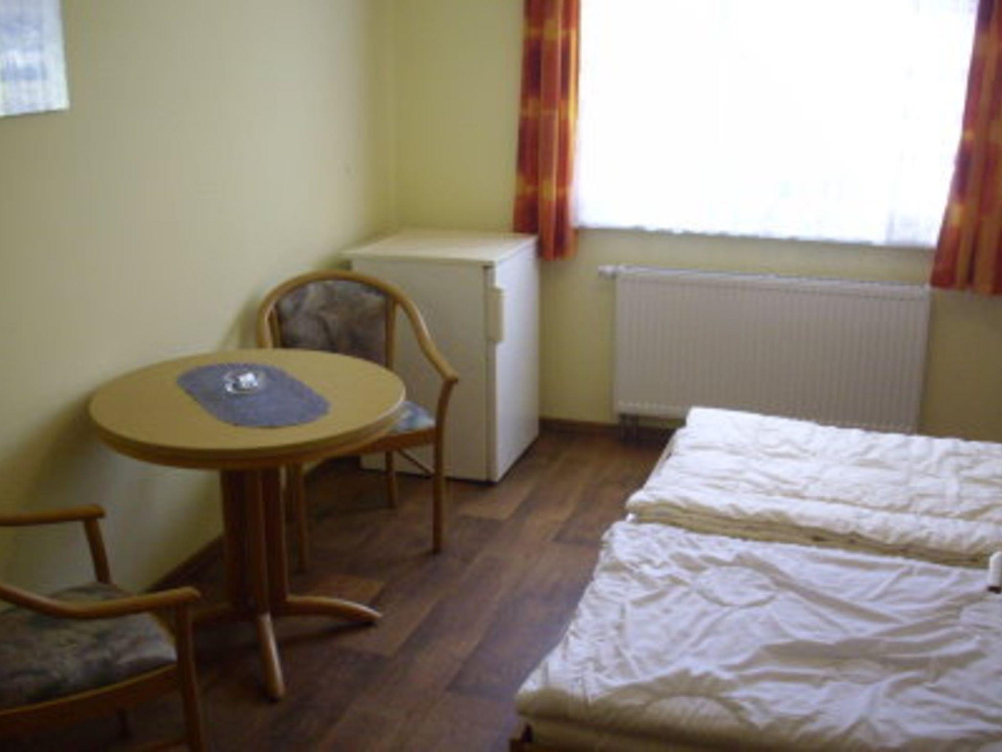 Gemütliches Zimmer mit Doppelbett und Gemeinschaftsküche in Trassenheide, ideal für Familien und Radfahrer.