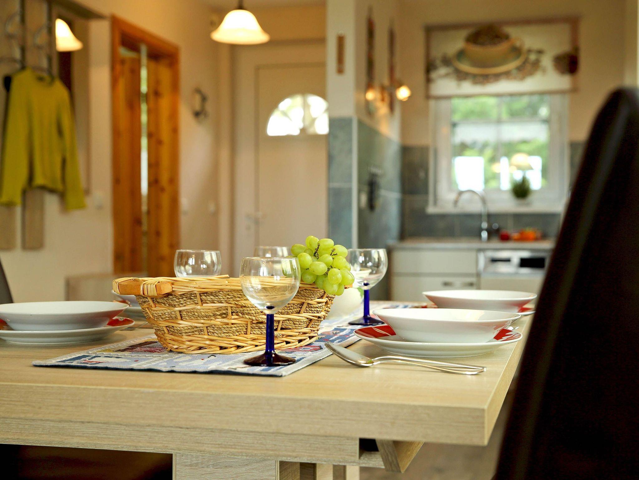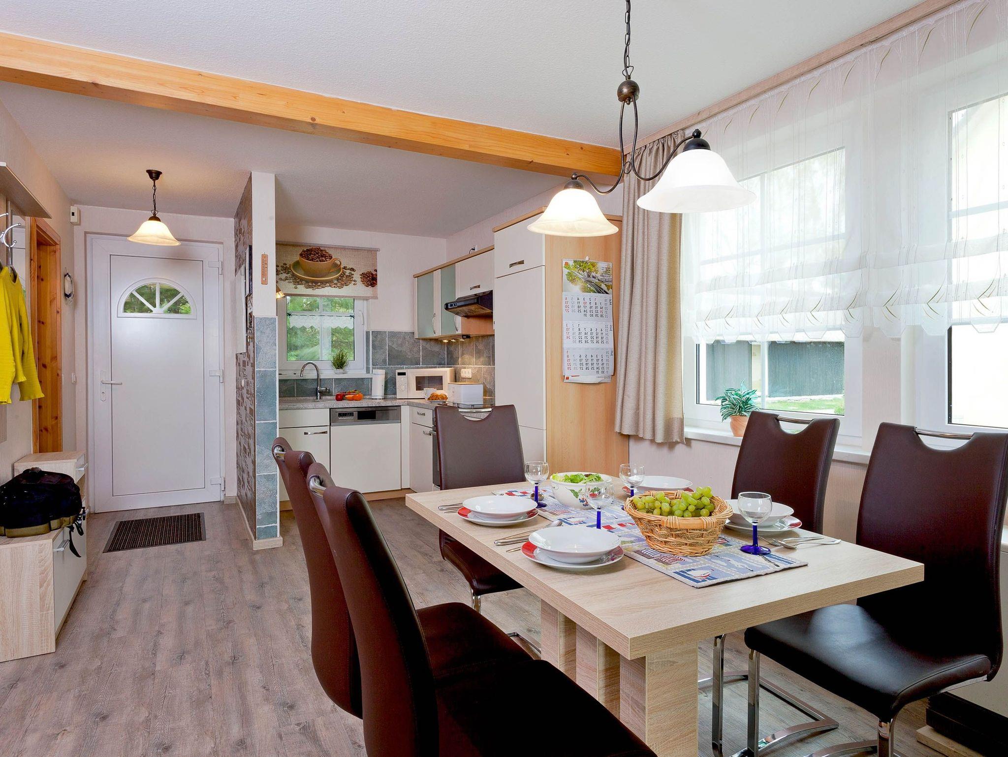 Angrenzend befindet sich eine komplett ausgestattete Küchenzeile mit allem, was Sie benötigen, um Ihre Lieblingsgerichte zuzubereiten. Am großen Esstisch für 6 Personen können Sie dann beisammensitzen und das Essen genießen. Im Erdgeschoss erwartet Sie ein weiteres, praktisches Badezimmer ? ausgestattet mit einer Waschmaschine, die Ihnen maximalen Komfort während Ihres Aufenthalts bietet!