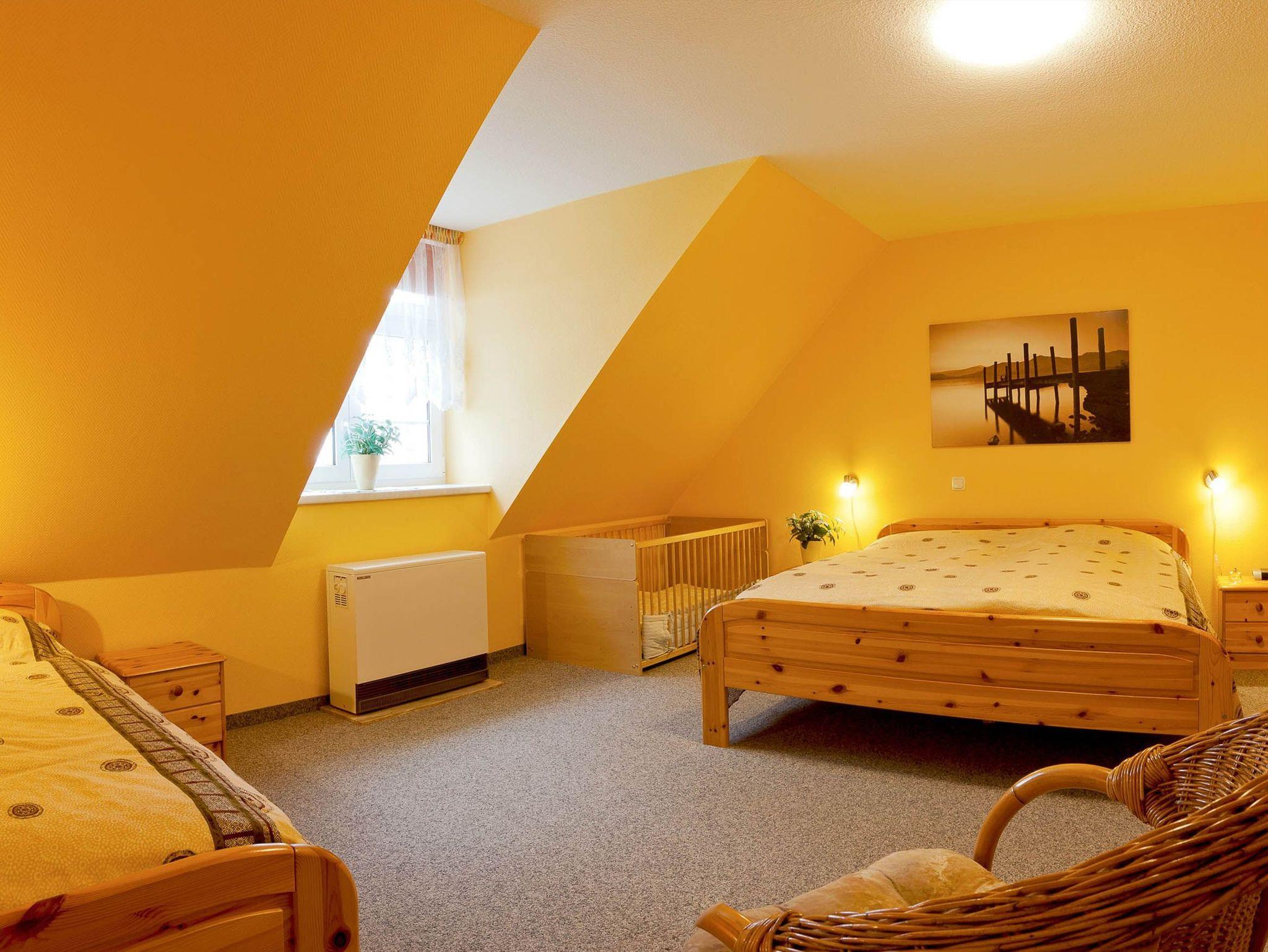 Das modern eingerichtete Haus verfügt über zwei separate Schlafzimmer im Obergeschoss mit je einem großen, bequemen Doppelbett. Zusätzlich stehen Ihnen in den Schlafzimmern je ein Einzelbett bzw. eine Schlafcouch und ein Kinderbett zur Verfügung, sowie verschiedene Verstau- und Ablagemöglichkeiten.