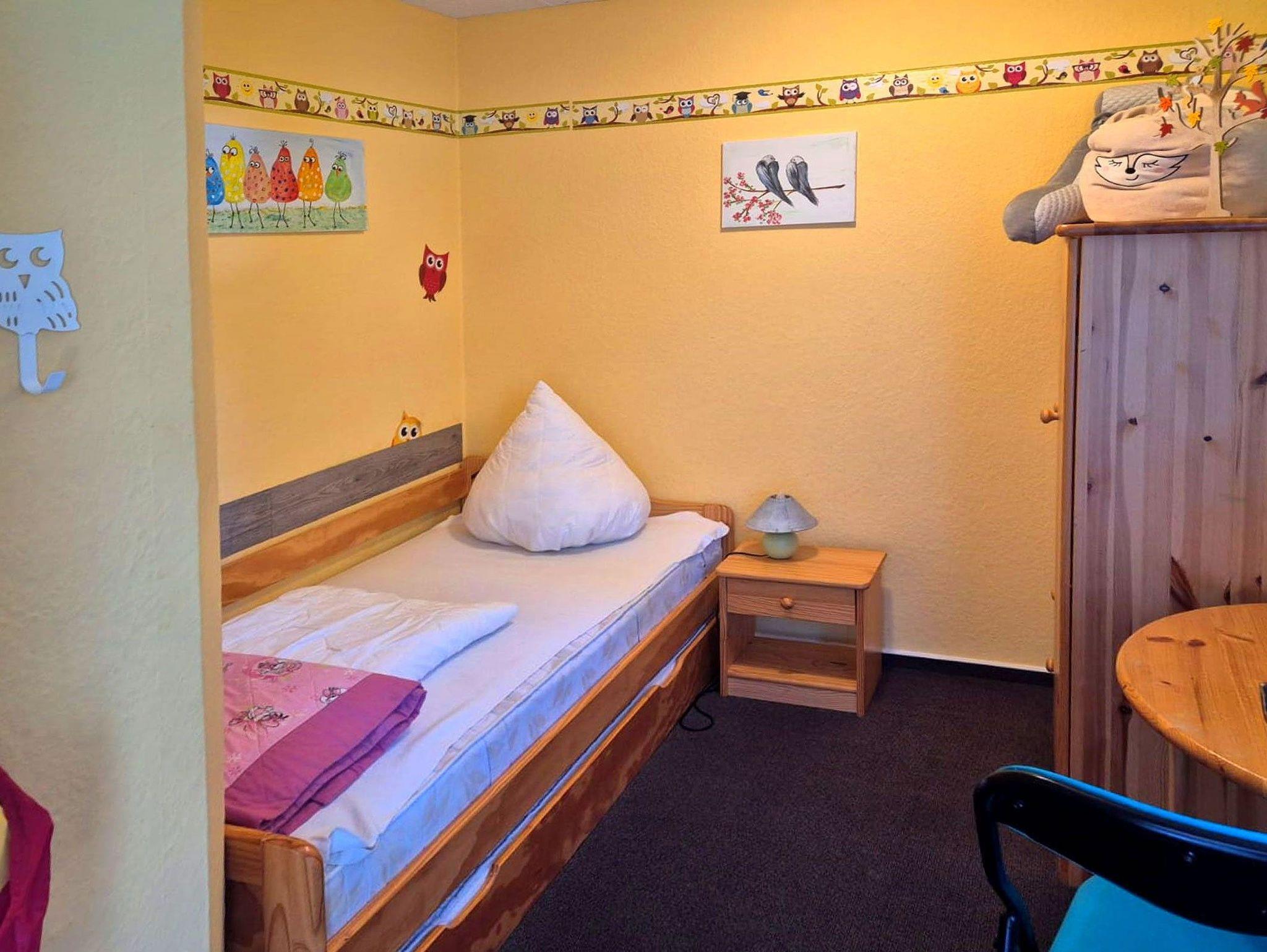 1 Schlafzimmer mit Doppelbetten, 1 Kinderzimmer mit Ausziehbett,