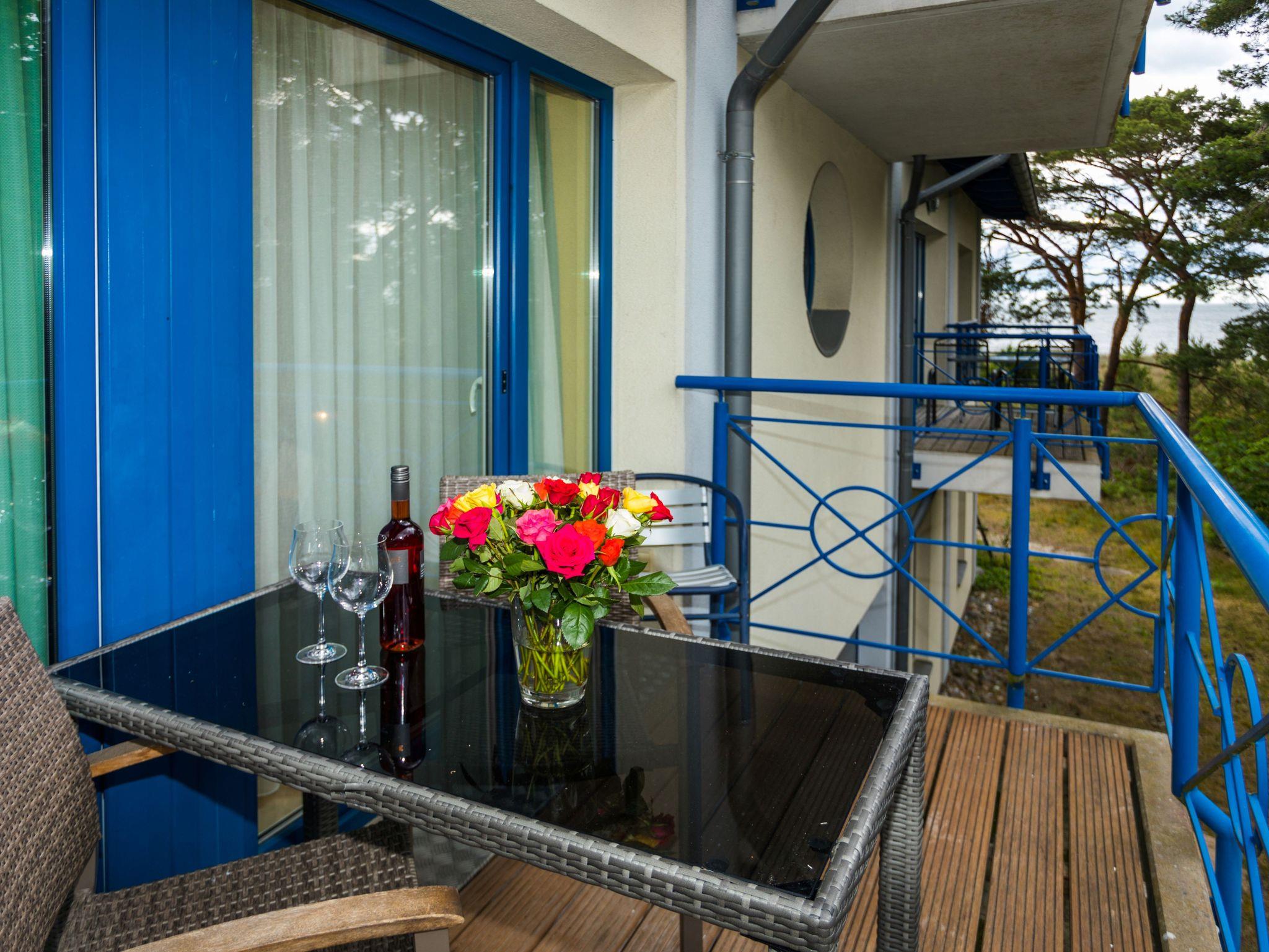 Ferienwohnung mit Balkon und seitlichem Meerblick